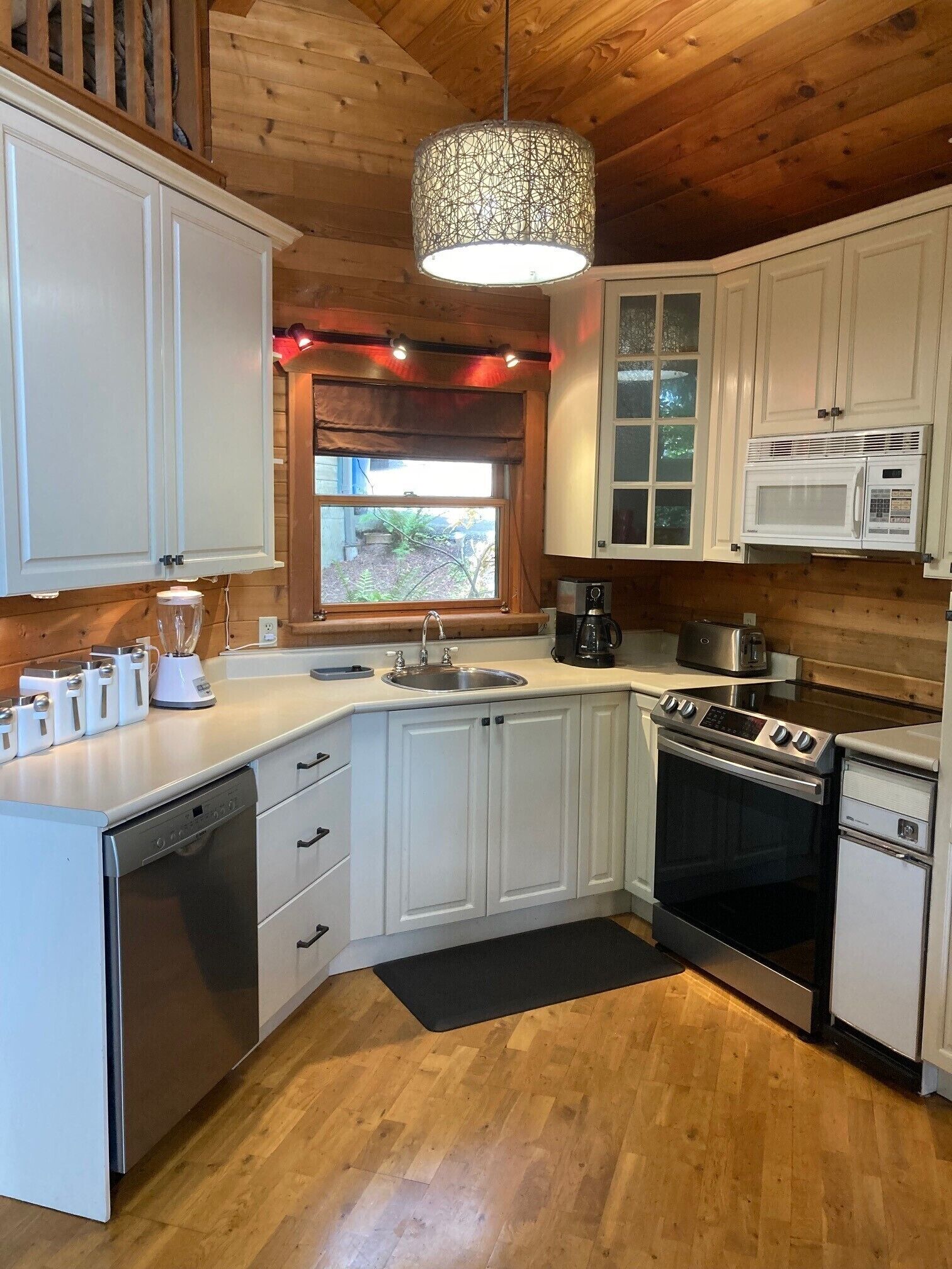 There are exterior metal roll down window shutters that make great black out for sleeping as well as fabric blinds inside. Due to the proximity of the TransCanada highway, some people may notice some traffic noise during the day. It’s very quiet at night.