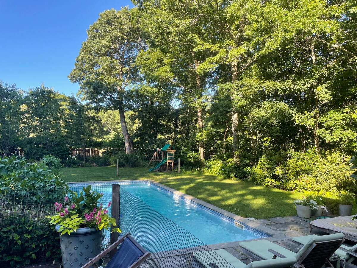 The living room has a 65 inch smart TV with cable, strong upgraded Wi-Fi, and a gas fireplace. The renovated kitchen features a Sub-Zero fridge & freezer, a 48' Viking range, a Miele dishwasher and Dacor double ovens. It's fully equipped with a lobster pot, Cuisinart stainless steel cookware, etc. The grounds are landscaped with many flowers and plants. There's a heated in-ground swimming pool (opens April 15) with an automatic safety cover, a hammock, a Weber grill, and an outdoor shower. Beach bikes are provided. There's driveway parking for up to three cars. Note dogs are permitted on a case-by-case basis with a $300 non-refundable fee. Cats are not permitted.