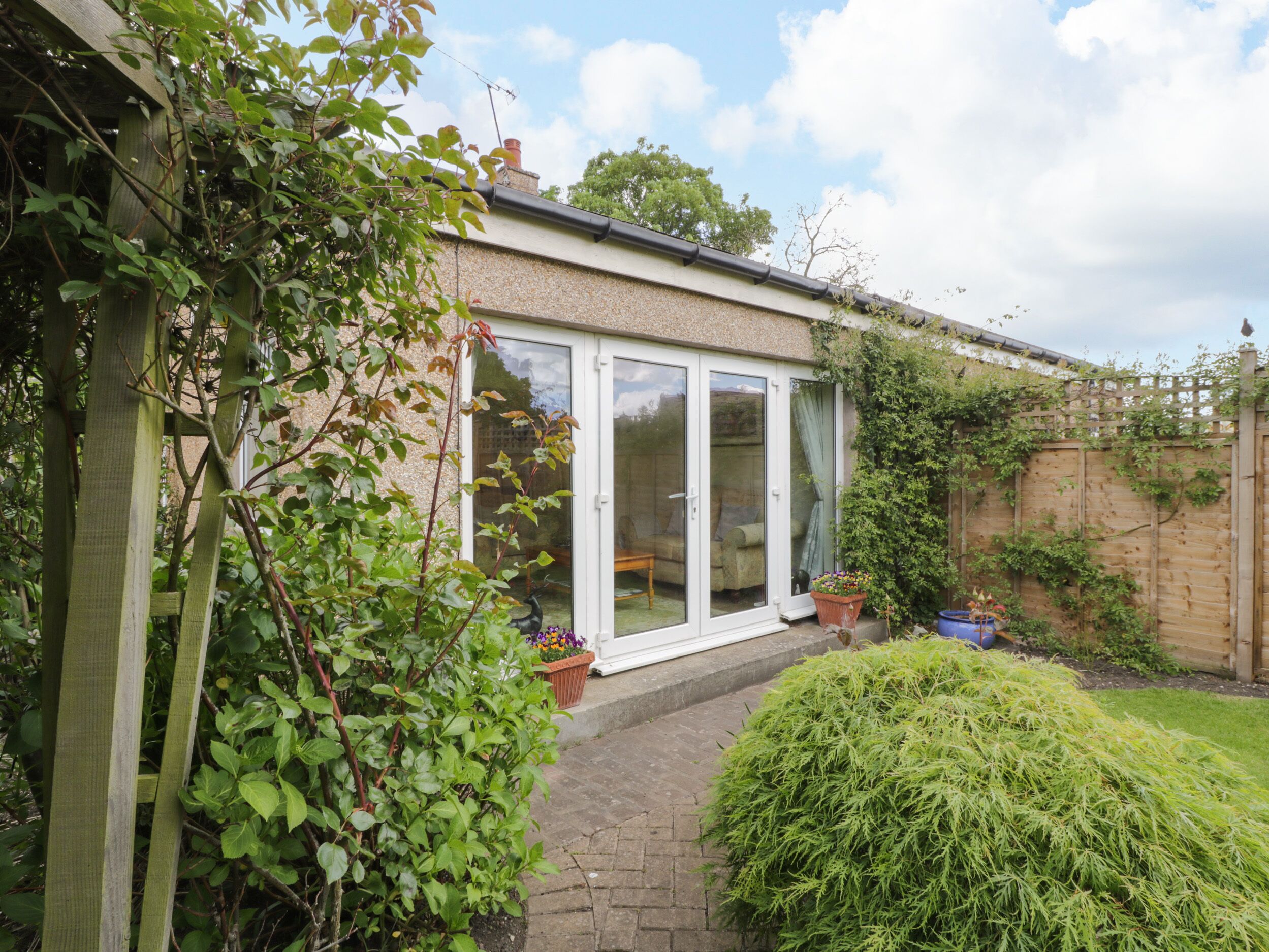 Amenities: Gas central heating. Electric oven and hob, microwave, fridge, freezer, washing machine, dishwasher. TV with Sky, TV, WiFi. Fuel and power inc. in rent. Bed linen and towels inc. in rent. Off-road parking for 1 car. Free public car park with EV charging point. Side patio with furniture, rear garden with lawn, patio, and furniture. Sorry, no pets and no smoking. Shop and pub 0.2 miles, River Tweed 0.3 miles. Note: There is a step into the property. Note: The gardens are not enclosed. Note: The annexe is situated next to the owner's cottage. Note: There is bike storage in the garage. Note: Children are not accepted at this property