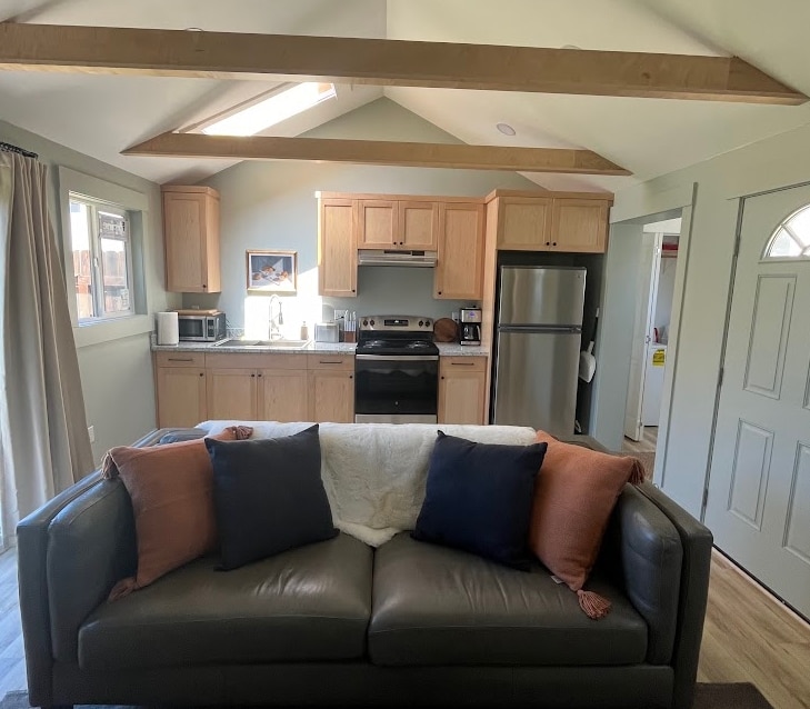 Guests will enjoy a good night's sleep on the comfortable new Queen beds with high quality bedding. Enjoy the large walk-in shower after a day hiking trails in the nearby Arcata Community Forest. Then relax on the sectional sofa and watch a movie on the Smart T.V. with 200 channels. Free WiFi is included. Washer and dryer available for guest use in detached laundry room next door.