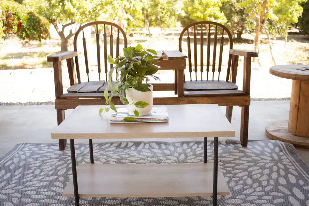 Outside, you will find plenty of space to walk or exercise on paved and dirt roads under the shadow of Venice Hill with views of the High Sierras or relax and unwind on the covered patio after a long day of hiking. Eat dinner or simply enjoy a glass of wine, put your feet up in the hammock to recharge before taking a stroll around the orchards. Pick your own oranges in the winter months!