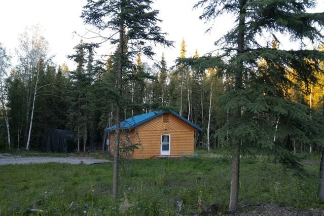 Private and peaceful, this cozy cabin is located in boreal forest at the end of a private road close to Fairbanks. You will enjoy exclusive use of this retreat during your stay. The hooting of a great horned owl on the mountain behind the house is only rarely disturbed by the distant moan of the locomotive winding through the valley below.The property that this cabin and the main house sits on feels remote even though it is less than 15 minutes from shopping and Fairbanks International Airport.