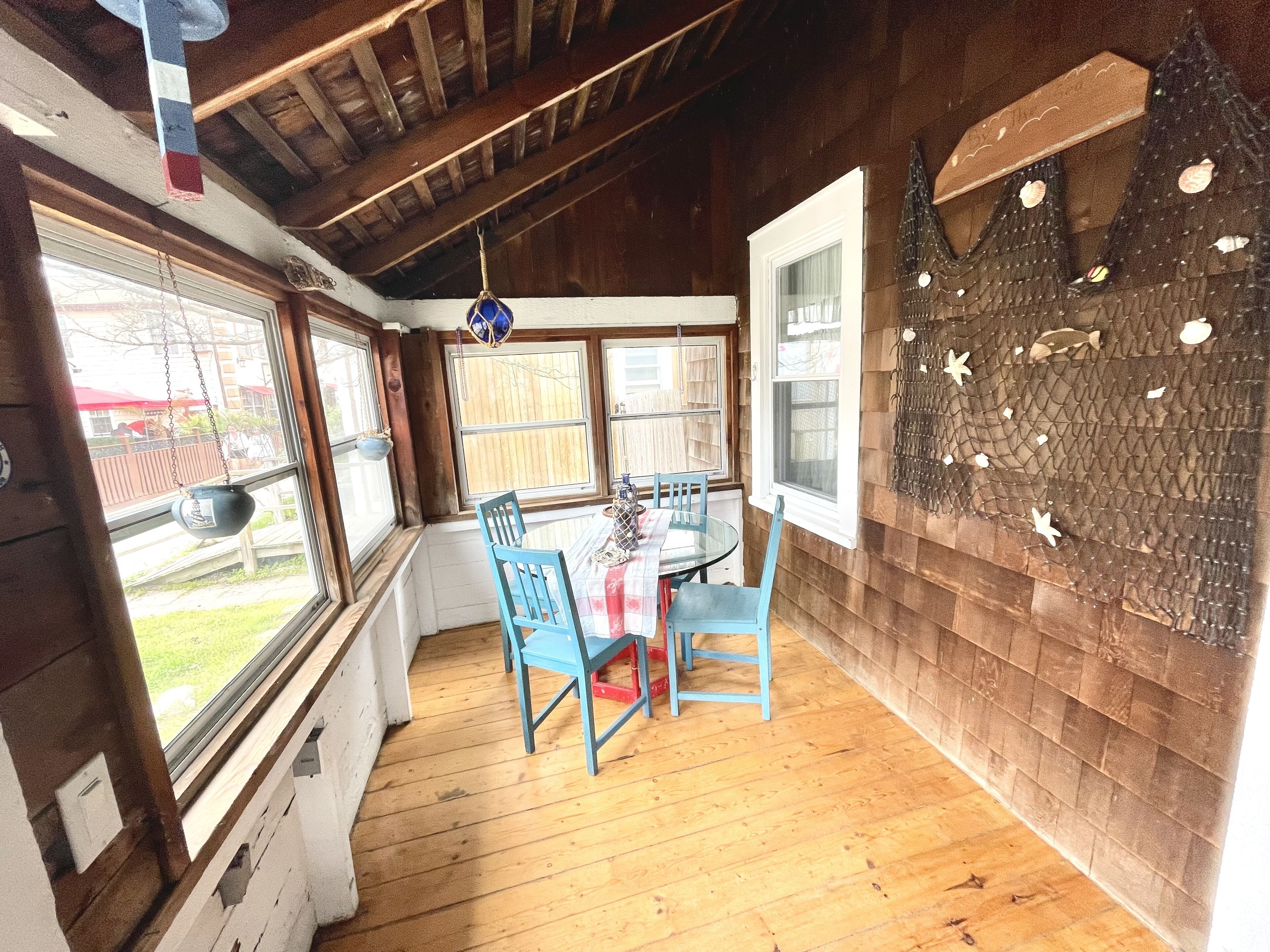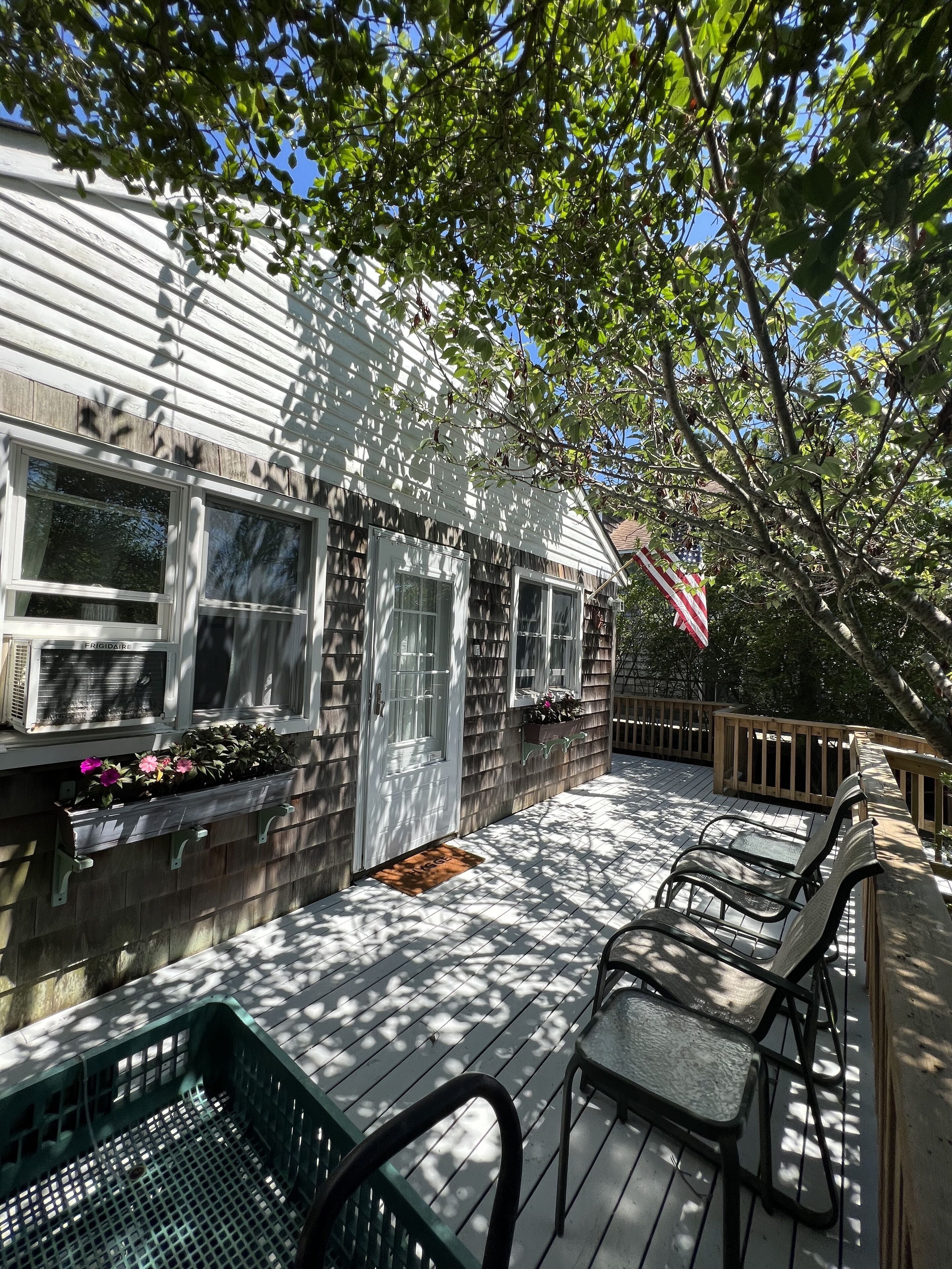 The interior of the home has been renovated to complete detail. The living room includes a very comfortable sofa with rattan club chairs. The indoor dining area provides a table and chairs or if you prefer, use it as a large desk. There are two bedrooms in the house with a Sofa and a Large cottage on the back deck. There is a full bath in the house and a half bath in the cottage. Bedroom #1 has a Queen Size bed with a Flat Screen TV, A/C and ceiling fan. Bedroom #2 has a Bunk Bed with an A/C, Flat Screen & a TV. In addition, there is a Glorious Outdoor Shower on the Back Deck. The kitchen is stainless and white with butcher block and granite counters. The home is also well equipped with a Weber Gas Grill, Bikes and a large wagon (including beach chairs and beach umbrellas.) This vacation story completes a rare and perfect union. Take a glass of wine to the dock, to meet your neighbors and watch the Sunset! Come back again!