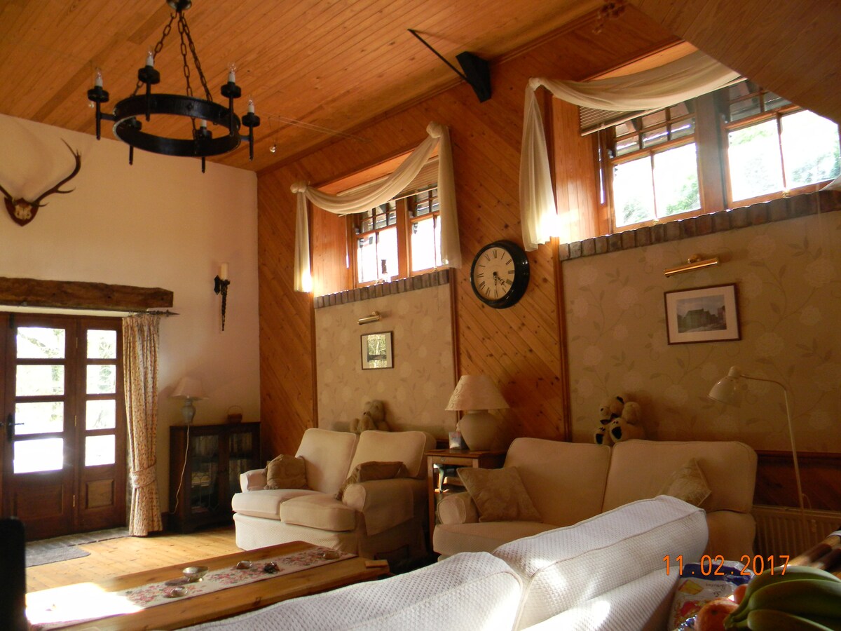 The lounge/dining room is large, and looks larger because it has 14 foot high ceilings, mostly covered in wood panelling. We have three sofas in the lounge, all of which are comfortable - who doesn't want to relax on holiday?