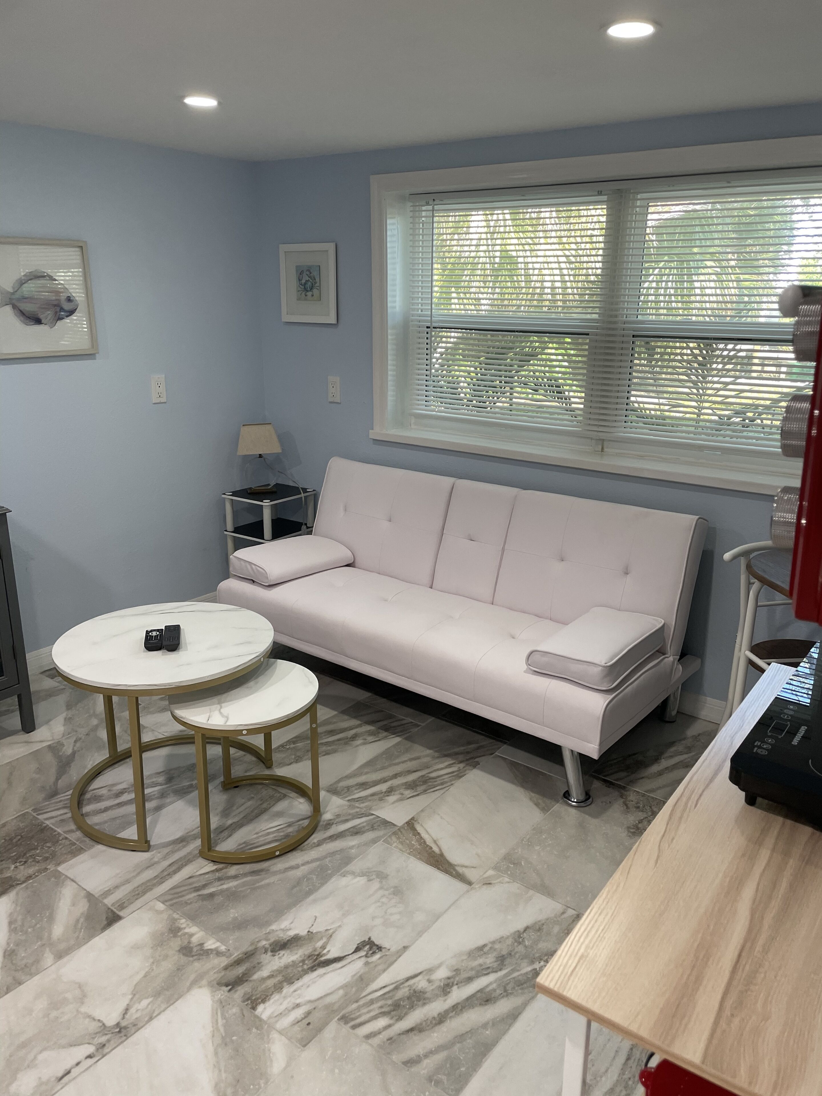 Come soak up the sun and be among the first to stay in this brand new 2024 renovated 2-bedroom home! Perfectly located in Fort Myers Beach, with just a short walk down the street to the beach with access across the boulevard and just under a mile walk to Margaritaville and Times Square for shopping and dining. Open concept living area features a living room with a 65" flat screen TV and a sofa bed. Enjoy the peaceful backyard and BBQ on your gas grill.
