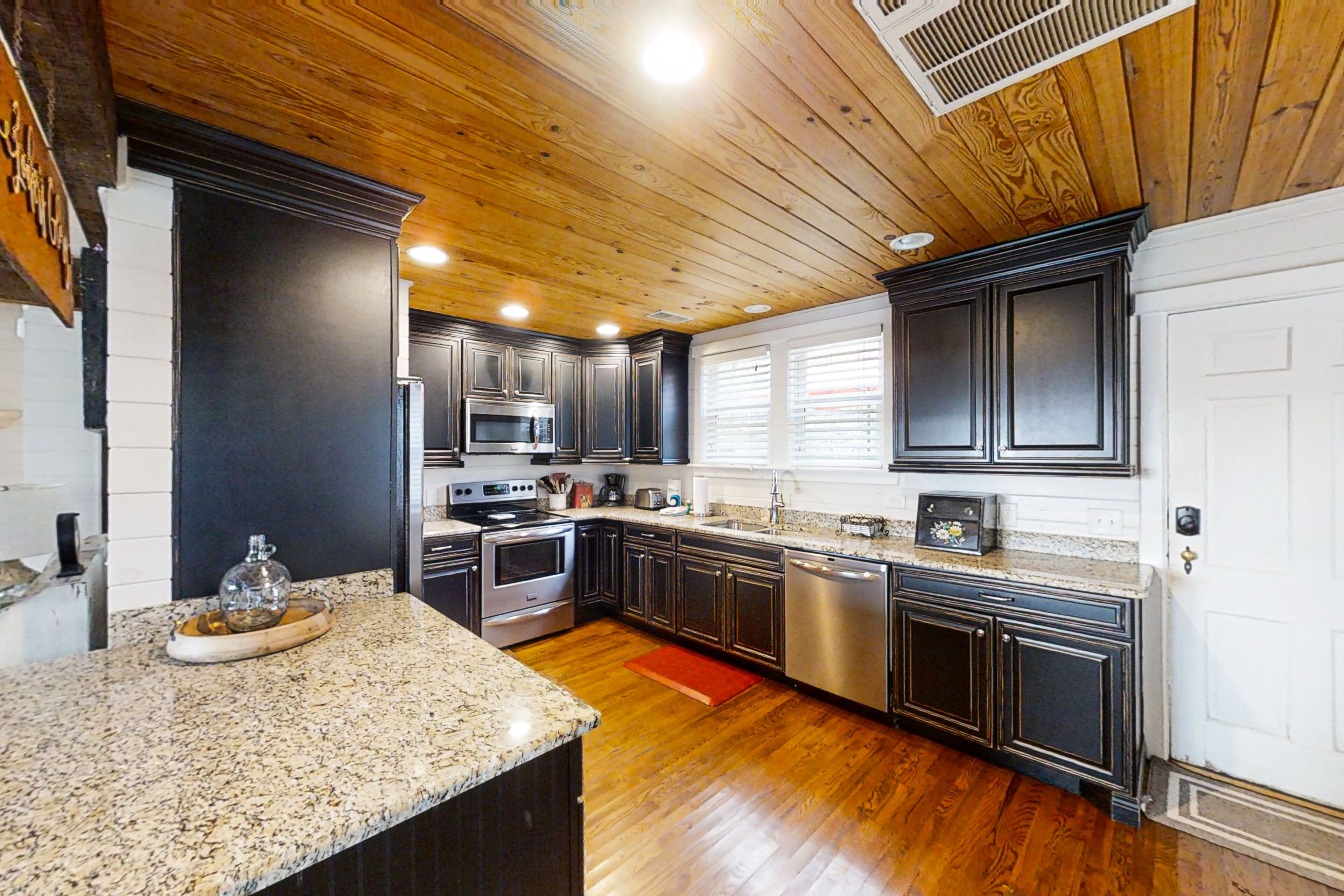 For visitors seeking the ideal escape, the Sugar Shack provides an opportunity to stay in a piece of history while enjoying every modern luxury and convenience. The recipient of a 2017 Award of Merit from the Heritage Foundation of Franklin and Williamson County, this cottage was designed with cozy spaces, vaulted ceilings, luxe furnishings and spa like bath amenities for the ultimate retreat. The gourmet kitchen is every cook's dream with state of the art appliances, five burner gas stove, pot filler faucet and oversized farm sink and quartz countertops.