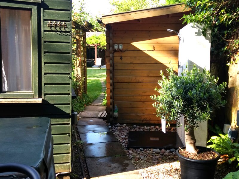 An outside hot/cold outside shower is provided for washing off muddy paws, giving your dog a full shampoo or for cleaning wellies.