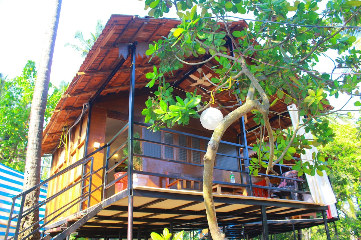 Welcome to your idyllic escape situated on the charming Ashwem Beach in Goa. This exclusive, one-bedroom beach cottage is surrounded by palm trees and right on the beach.
