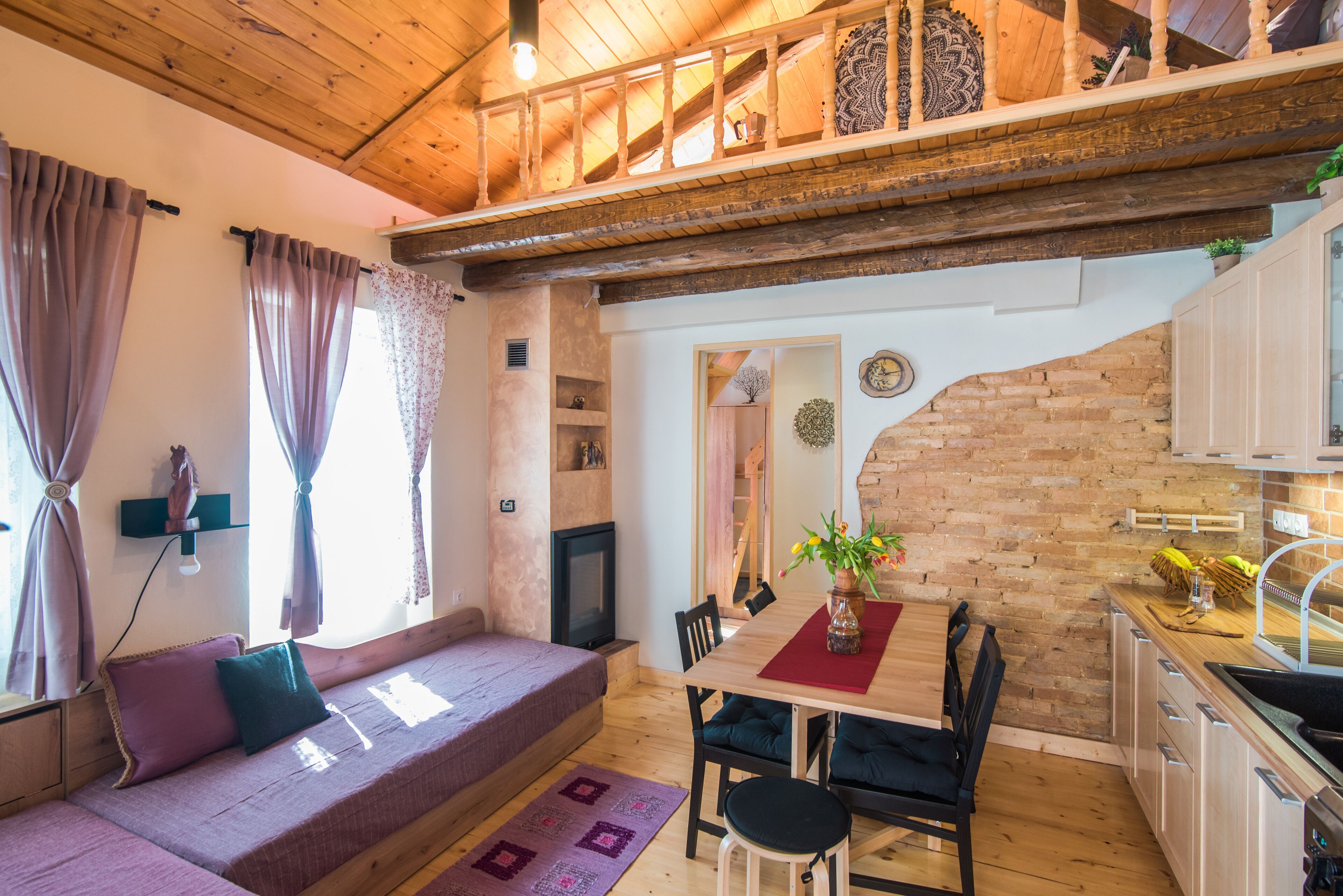 The house is recently renovated in rustic style with respect to its history. The decoration and the design of the space was made with love, in order to offer a space that relaxes with its aesthetics, enriched with notes from our artistic engagement with the woodworking art.