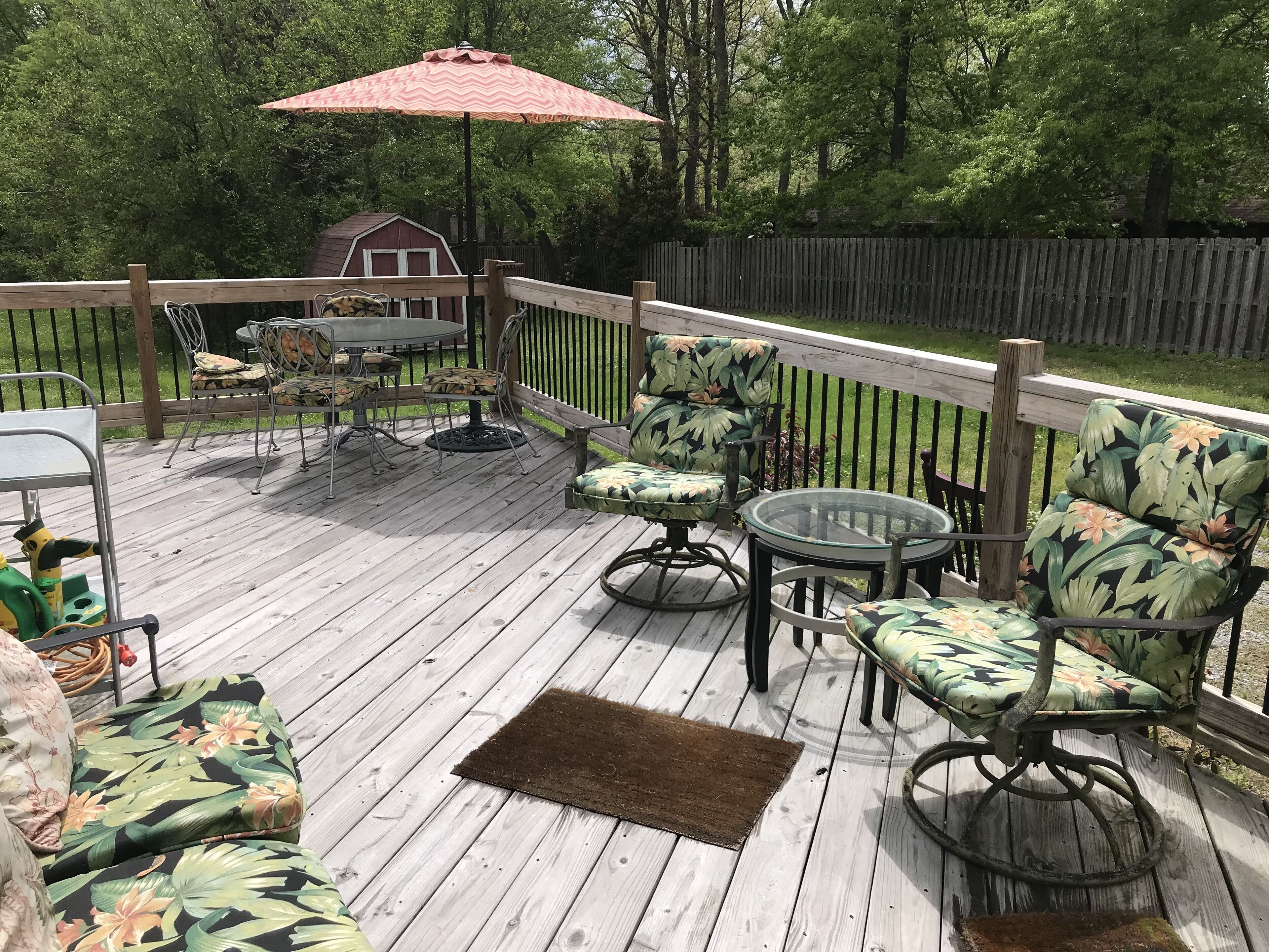 Gas grill and rocking chairs on back porch to enjoy while making dinner or sipping morning coffee. Take some time to sit and relax at the back yard fire pit. Wood is available at most any local grocery/hardware store.