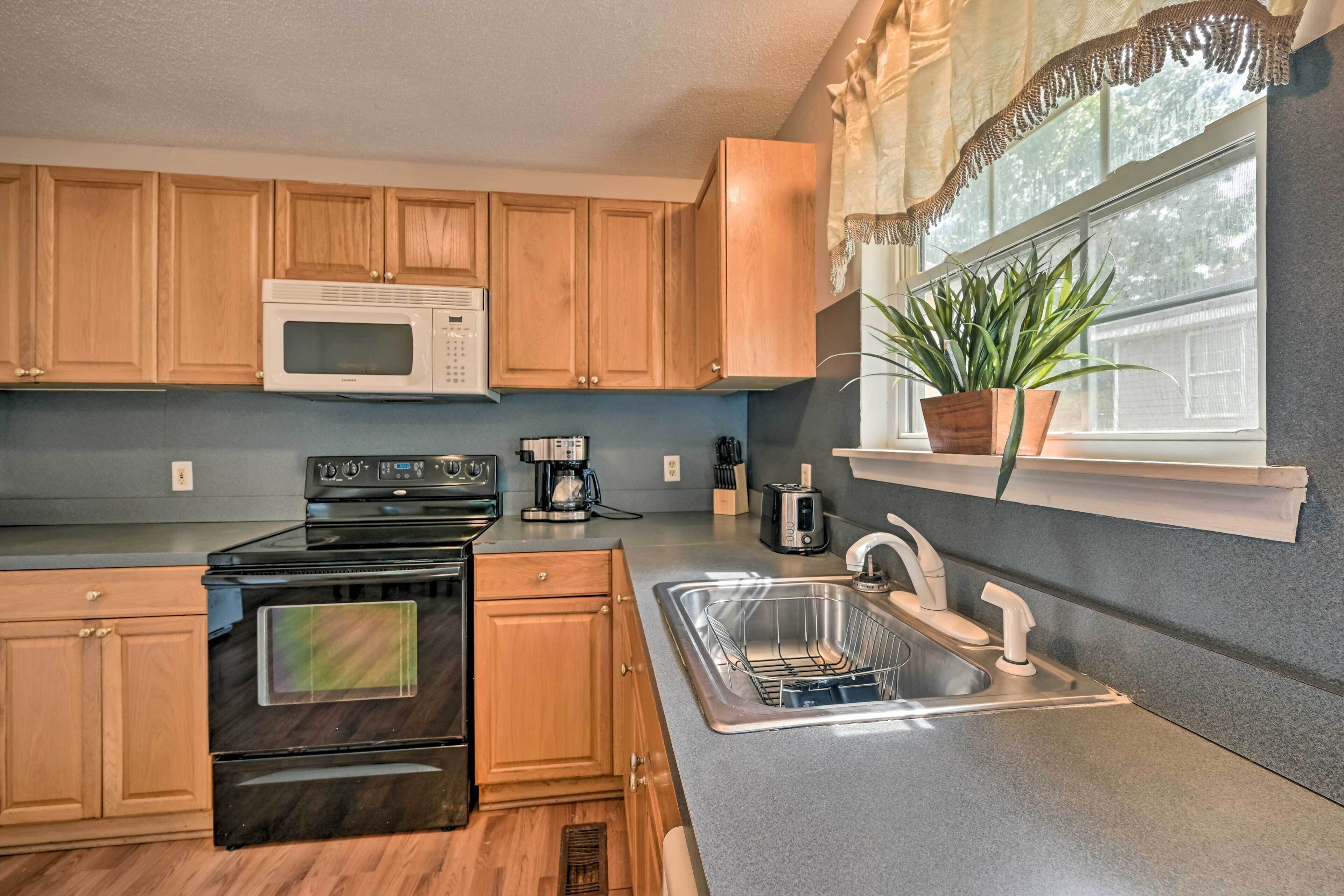 Tucked away in a secluded setting while primely located next to downtown, this cozy, modern 2-bedroom, 1-bathroom Greensboro home offers you the best of both worlds. Enjoy quick, easy access to the city’s numerous restaurants, parks, and destinations, including the Greensboro Coliseum, Aquatic Center, and Wet'n Wild Emerald Pointe Water Park. Then, retreat to the vacation rental where you can take advantage of the private deck, gas grill, wood-burning fire pit, Smart TVs, board games, and more!