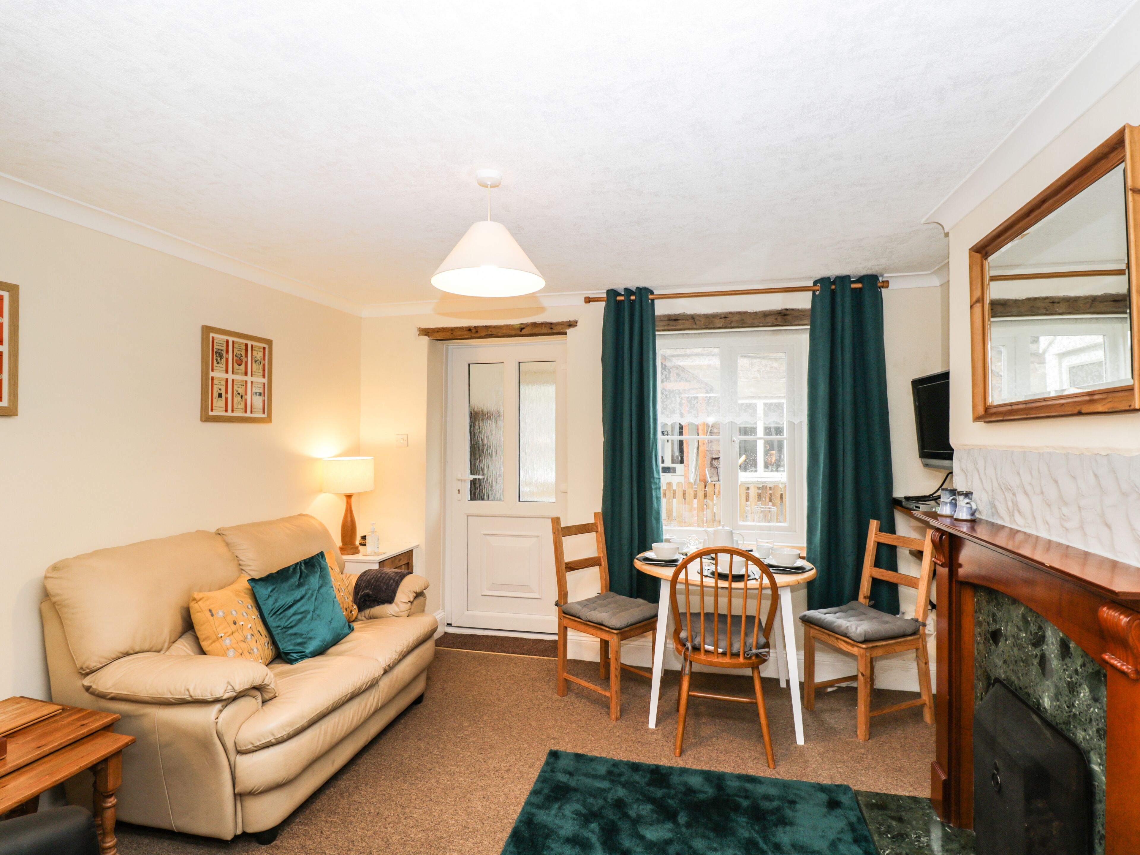 Amenities: Central heating. Electric oven and hob, fridge, freezer, microwave, kettle, toaster. TV. Fuel and power inc. in rent. Bed linen and towels inc. in rent. Secure on-site parking for 1 car. Private patio plus shared lawn space with furniture. Tesla charging point is available for overnight use only - charges will apply. Sorry, no pets and no smoking. Shop 0.2 miles, pub 0.1 miles, river 0.4 miles. Note: No WiFi. Note: No children. Note: Steep stairs are not suitable for those with mobility issues. Note: Next to owner's house. Note: Check-in 3pm, check-out 11am. Note: 2 night minimum stay. Please Note: people with limited mobility may not be suitable for this property due to the steep stairs.