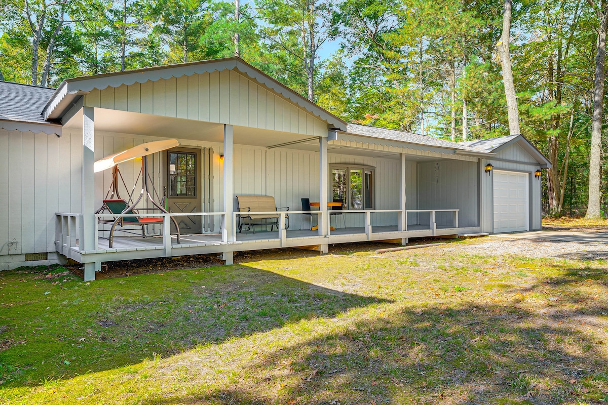 Retreat to this charming vacation rental in Roscommon, Michigan, where you can explore South Higgins Lake State Park or take a short drive to Cross Country Ski Headquarters in the winter! Don’t forget to walk to Higgins Lake and cast a line or hit the beach! Return to the 3-bedroom, 2-bathroom cottage, lounge in the scenic sunroom with loved ones, and prepare a meal in the well-stocked kitchen. Later, have a picnic in the front yard or watch a movie in the living room.