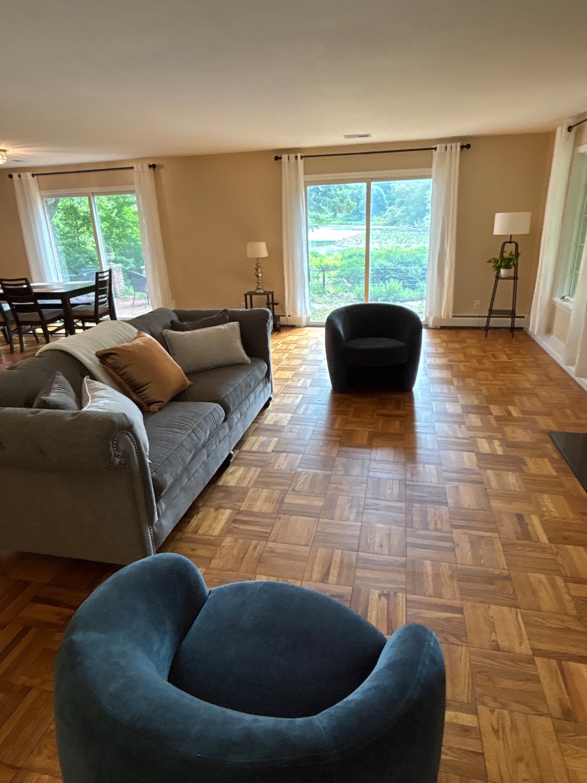 • Our cottage was built in the 1970s and still boasts electric baseboard heaters. We have updated each room with a digital thermostat so you can easily adjust temperatures to your liking. Our wood-burning stove can heat the space fabulously in the colder months.