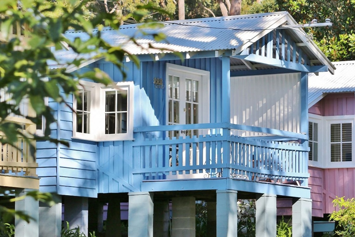 The Hyams Beach Seaside Cottages are quaint colourful heritage cottages nestled along a creek with north facing verandahs. They are the perfect spot to take in the tranquility of Jervis Bay. The cottages contain a bedroom with ensuite, sitting room and a balcony overlooking the small tree-lined creek that crisscrosses the site. The staggered layout of the cottages ensures that each has a view towards Jervis Bay from a north facing deck. The beaches and café are only minutes from your front door! Perfect couples only getaway.