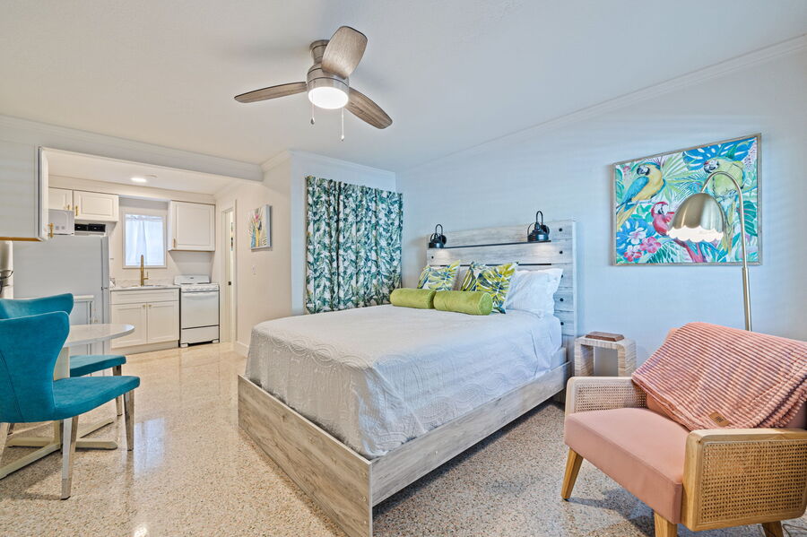 This charming cottage is a 1-bedroom, 1-bathroom home featuring an open-plan kitchen and living room, conveniently located just across the street from the 20th Ave beach access walkway onto Indian Rocks Beach, Florida (IRB)