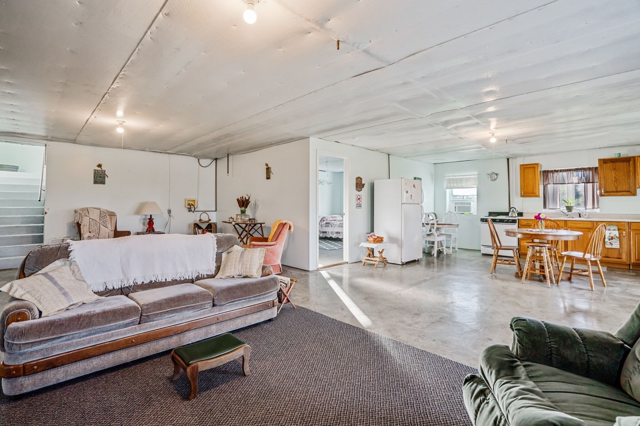 You'll love our recently renovated cottage, because of the comfortable, modern farmhouse chic vibe. Features cathedral ceilings, sliding barn-style doors to the bedroom, modern stainless appliances, butcher block counter tops, an island made of reclaimed wood, and an antique farmhouse sink!