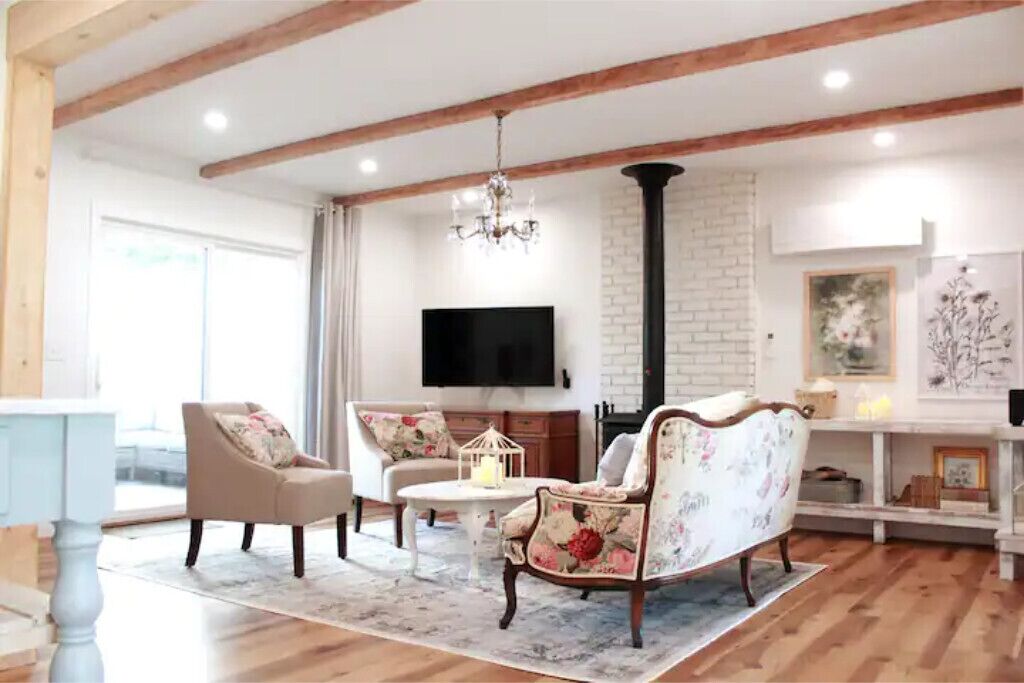 As you walk in the front door, you’ll know immediately you're someone special. The Cottage is straight out of a fairy tale with high wood beamed ceilings with freestanding wood burning stove. Your focus will be the Victorian King bed with upgraded bedding that you’ll only find in higher end B&B's . The en suite bathroom provides couples with a large full body shower as well as a deep soaking tub for two. Egyptian cotton towels.