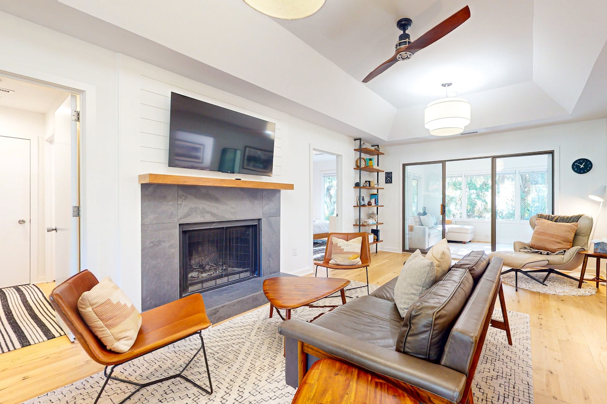 Our NEWLY RENOVATED, lovely cottage on the cul-de-sac in Sparrow Pond is conveniently located in West Beach with only a seven-minute walk to the ocean, five minute walk to the private pool, and Cougar Point's beautiful new clubhouse (includes a great casual restaurant)is only a quick one minute walk and is one of the five golf courses available for you to play on the island. Enjoy a leisurely three mile bike ride to Freshfields marketplace past the beautiful marsh where you will can stroll the many shops and restaurants and enjoy the outdoor movie nights. Our renters often comment that we have the BEST LOCATION on the island!