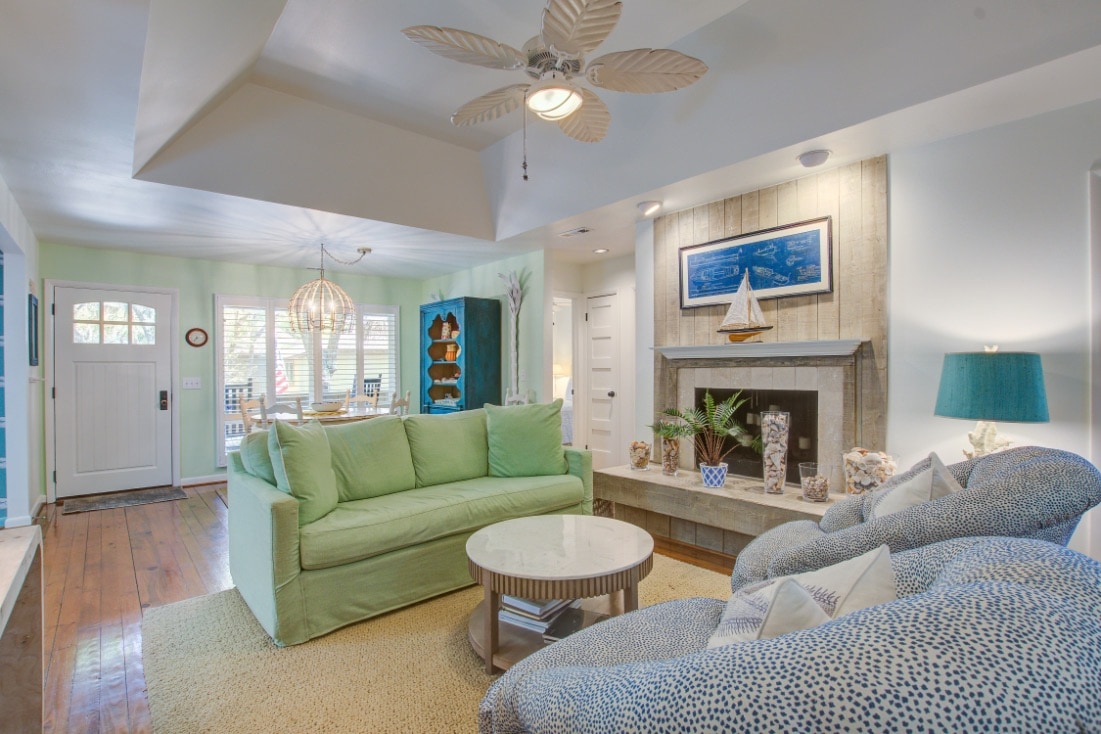 Our comfortable cozy cottage has hardwood laminate floors throughout. Skylights and ceiling fans add to the Southern climate comfort. The screened porch has been enlarged to accommodate both a dining area as well as a seating area to enjoy the beauty of the Island. Internet, smart tv's in great room & queen/master bedrooms, a full library, and games for family enjoyment. Bathrooms updated with showers and double sinks in the master.