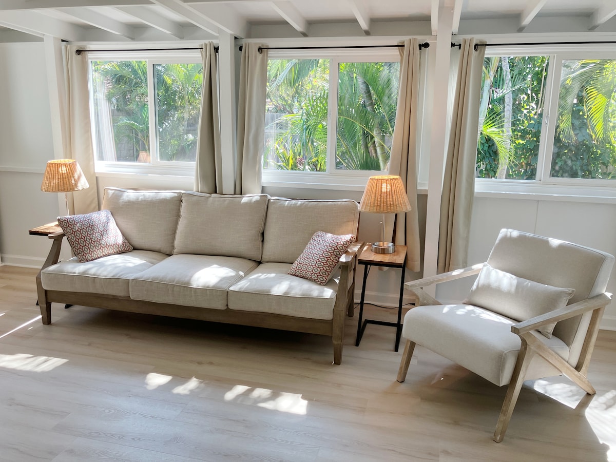 Relax on the private lanai with a BBQ grill and stylish chaise loungers, the perfect spot to unwind with a drink while enjoying the stunning sunset. Take a quick stroll to the ocean for a refreshing swim, then return for a delightful al fresco dinner prepared on the barbecue.