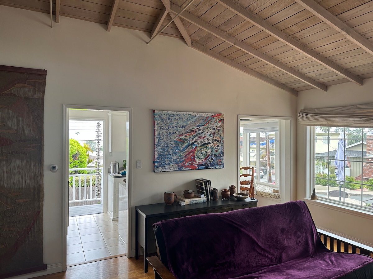 Awesome sweeping close-in ocean views. Just enough time to fall in love with the coast—and the characters! Escape the troubles of the modern world and come to our beach cottage where life is one long holiday. Drop your shoulders, recharge your batteries, fill your senses and your tummy, all just steps away from sand between your toes. Enjoy our close-in panoramic ocean view open deck or maybe you want to try paddleboarding or paddle yoga at Fishermans or Divers Coves, or surfing, kayaking, rent scuba gear, snorkeling gear, get scuba certified, book a scuba boat trip, all one block away, have a massage, hike the neighborhood trails, rent and electric bike, explore the tide pools, have a Starbucks, go a block to Pavillions supermarket for adult beverages or healthy indulgences. Husky Boy burger shack, Jan's for super-healthy breakfast smoothies, Açaí bowls, and lunch, Reunion Kitchen in house dining and full bar, Pizza, and Asada Mexican with margaritas, a Vietnamese specialty coffee house, UPS store, and more, all just doors away.