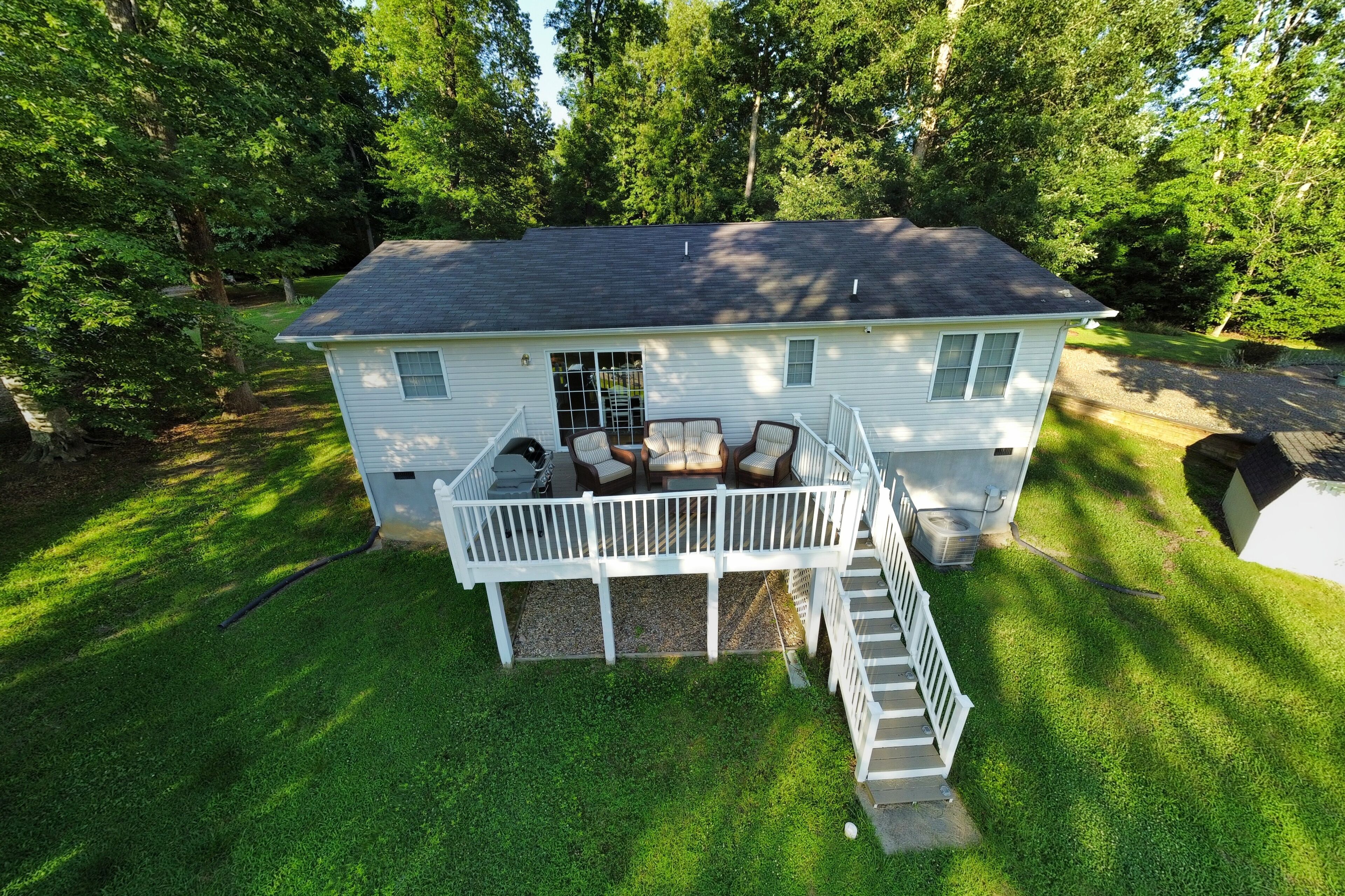 Relax with the family at this waterfront cottage. Cottage sits only 100 ft from water’s edge, in a quiet no-wake cove of Lake Anna. 1,200 sq ft cottage located on acre with space to park your boat. Boat dock to tie up water toys and 2 kayaks for your enjoyment. Community boat ramp is 2 minute drive. Soak up the sun or enjoy lunch on the boat dock, with a sandy beach for the little ones. Back deck with gas grill after a day on the water and morning coffee with water views and wooded surroundings.
