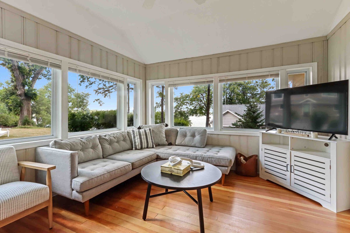 Escape to Tranquil Waters, a charming 1-bedroom retreat perfect for couples and small families that features a king bed, an ottoman that opens to a twin sized bed, and bonus lounge upstairs. Just one block from Lake Delavan's boat launch, this cozy hideaway blends comfort with style. Exceptionally clean, thoughtfully equipped, and surrounded by stunning outdoor spaces, your getaway promises to be truly unforgettable!