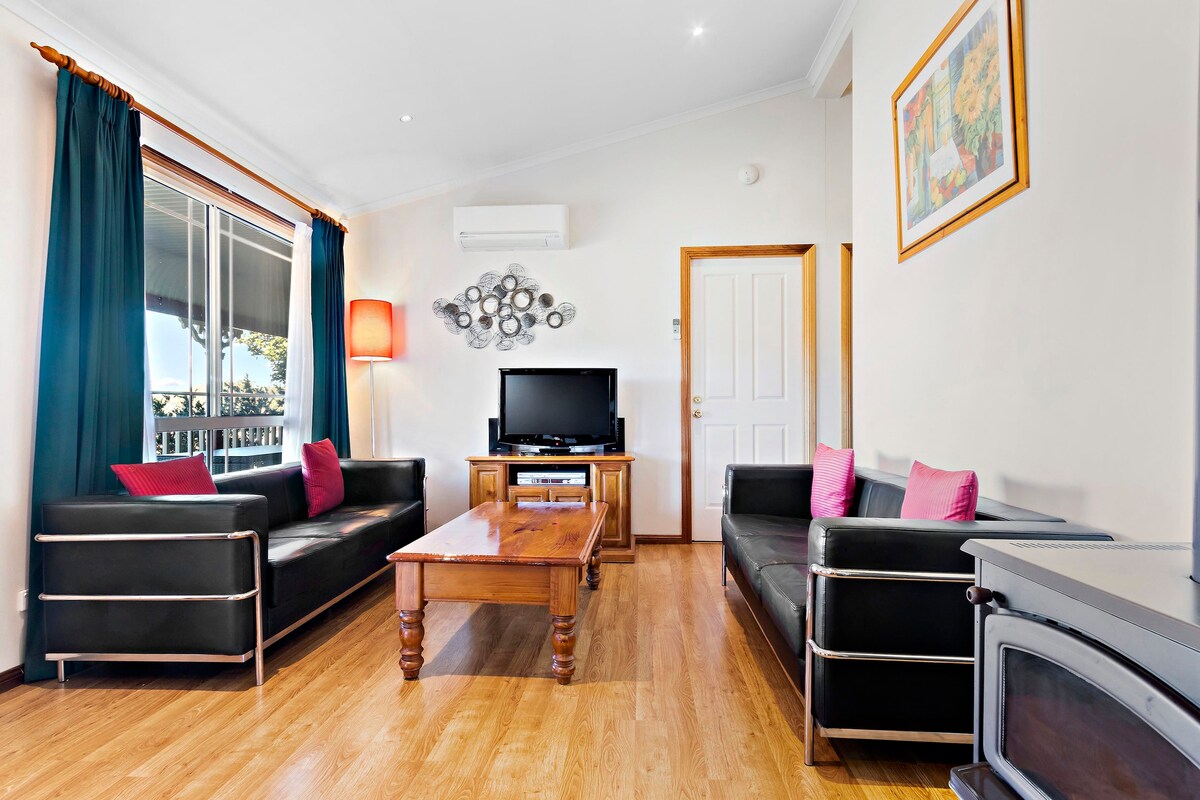 The Homestead was originally built as the owner's residence and is ideal for accommodating large groups and families. It can comfortably sleep up to 12 people, with 3 queen bedrooms, 1 bedroom with 2 single beds, and a 5th bedroom featuring a queen bed and 2 single beds. Quality linen is provided for guests' comfort. Additionally, guests can enjoy complimentary Wi-Fi and streaming-enabled TVs. The spacious kitchen/dining area is perfect for communal meals, and there is an additional lounge room for relaxation. Furthermore, guests can unwind with a pool table and use the gas BBQ for outdoor cooking.