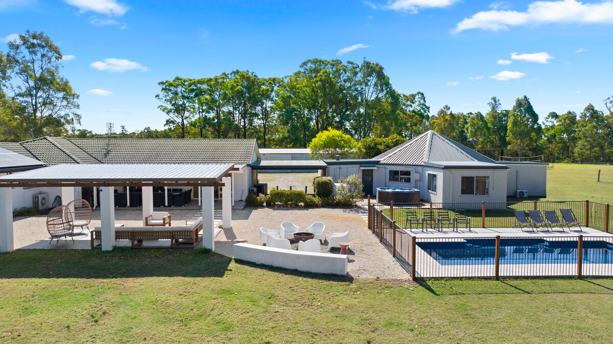 The cottage has open kitchen living and dining area with a 20 seater dining table, 85 inch TV, gas powered pizza oven and 5 air conditioning units.