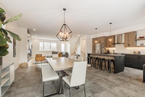 26 miles from Foresta Lumina in Magog-Orford, Le Memph Chouette spacious comfortable condo cottage eco responsible 3 bedrooms private garage - hot tub & pool Memphrémagog Lake features accommodations with access to a hot tub. This apartment provides air-conditioned accommodations with a balcony. There's a seasonal outdoor pool and guests have access to free Wifi, free private parking, and an electric vehicle charging station. Providing a terrace and garden views, the spacious apartment includes 3 bedrooms, a living room, flat-screen TV, an equipped kitchen, and 3 bathrooms with a hot tub. Towels and bed linen are provided in the apartment. The accommodation has a fireplace. Guests can relax in the garden at the property. Parc de la Gorge de Coaticook is 27 miles from the apartment, while Marais de la Riviere aux Cerises is a 11-minute walk away. Montréal/Saint-Hubert Airport is 70 miles from the property.
