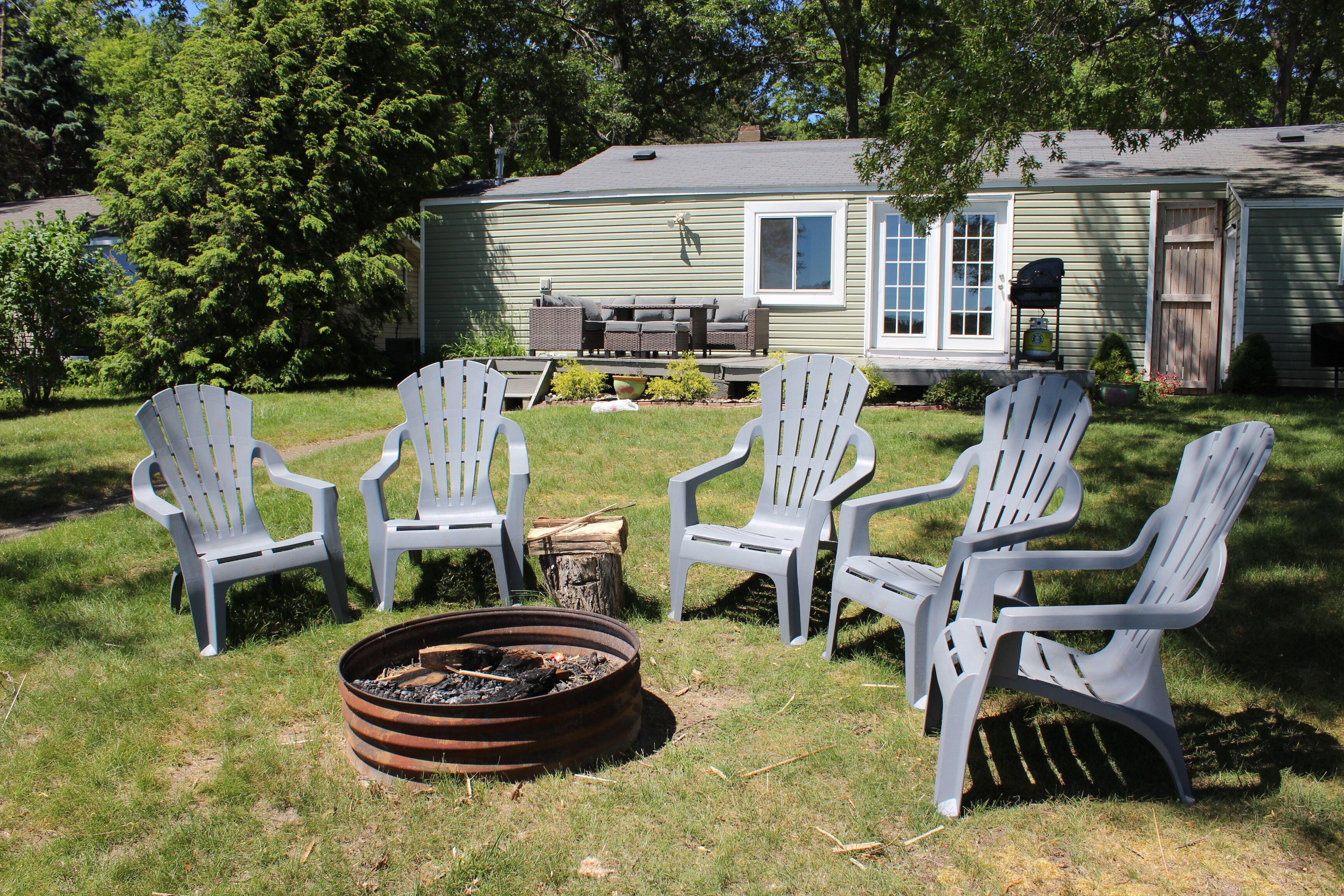Step outside onto the high bluff, overlooking the lake. This cabin boasts over 265ft. of private Lake Michigan beachfront access by private stairs. Firepit for roasting marshmallows, spacious patio with lounge seating, large picnic table, and Weber gas grill for all your entertaining needs.