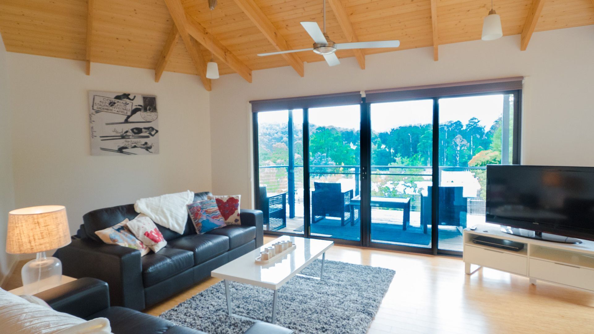 A relaxing and fresh retreat from the city, it has 2 bedrooms (one double bed, one queen size bed) and a single portable bed, fully equipped kitchen, dining area, bathroom, separate toilet, reverse cycle air-conditioning, and a beautiful decking area.