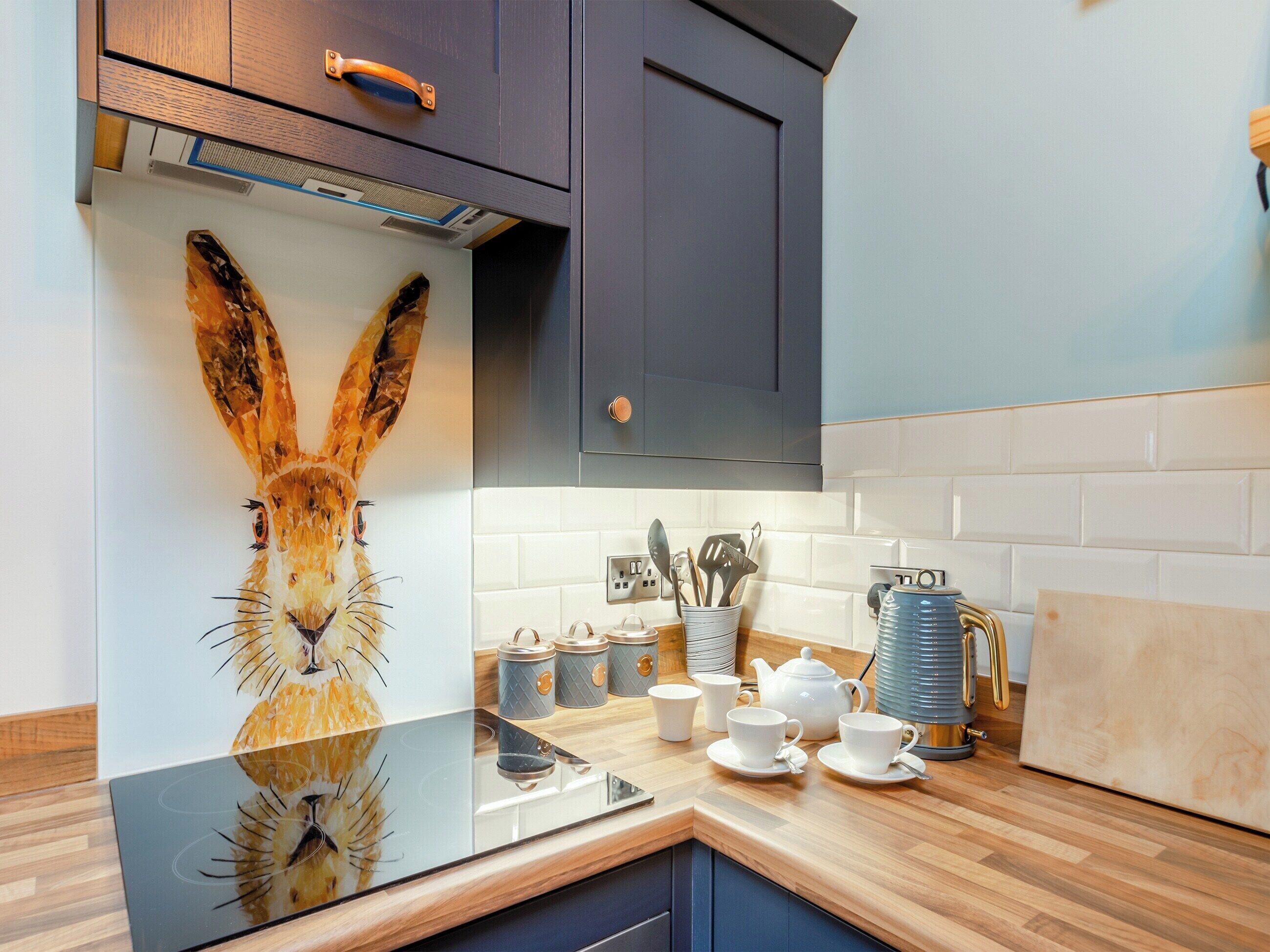 Before stepping inside, notice the sweet bistro set positioned outside the property, a spot to sit with a morning coffee or your first drink of the evening. The single-storey property is centred around an open-plan lounge/kitchen with a double-height ceiling, handsome beams and skylights letting light flood in. The bespoke kitchen with a breakfast bar for dining is on one side, complete with a coffee machine to get you going each morning. Next door, a super-king-size bedroom with a zip-and-link bed is a versatile choice and an ultra-modern shower room invites you to get ready to take on every adventure.