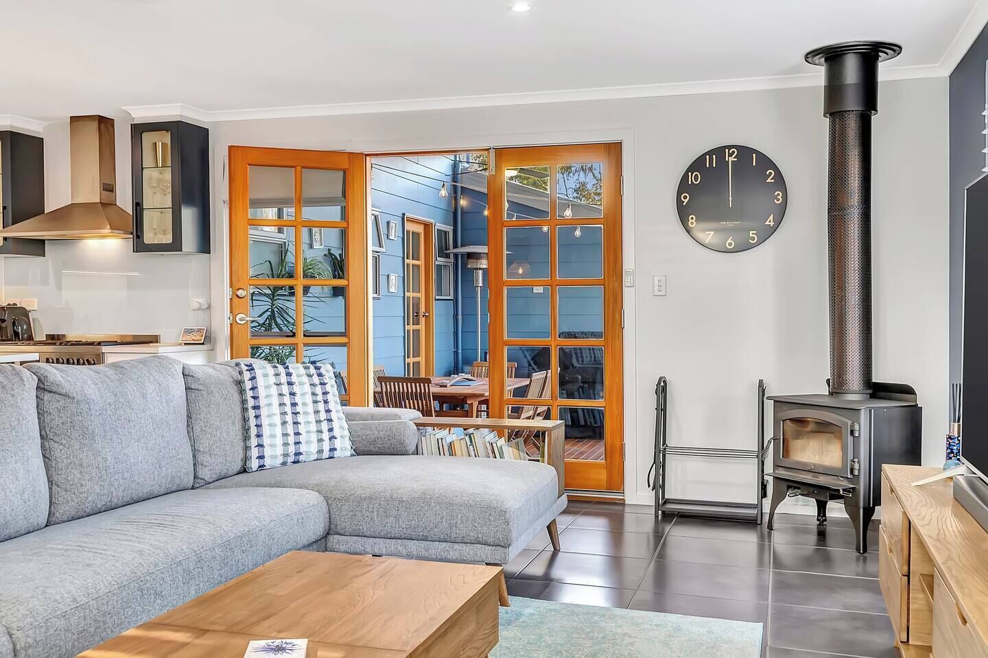 • The freestanding wood fire adds extra cosiness to your stay. For families with small children, please use care around the fire, or opt for the reverse-cycle air conditioning provided throughout the home.