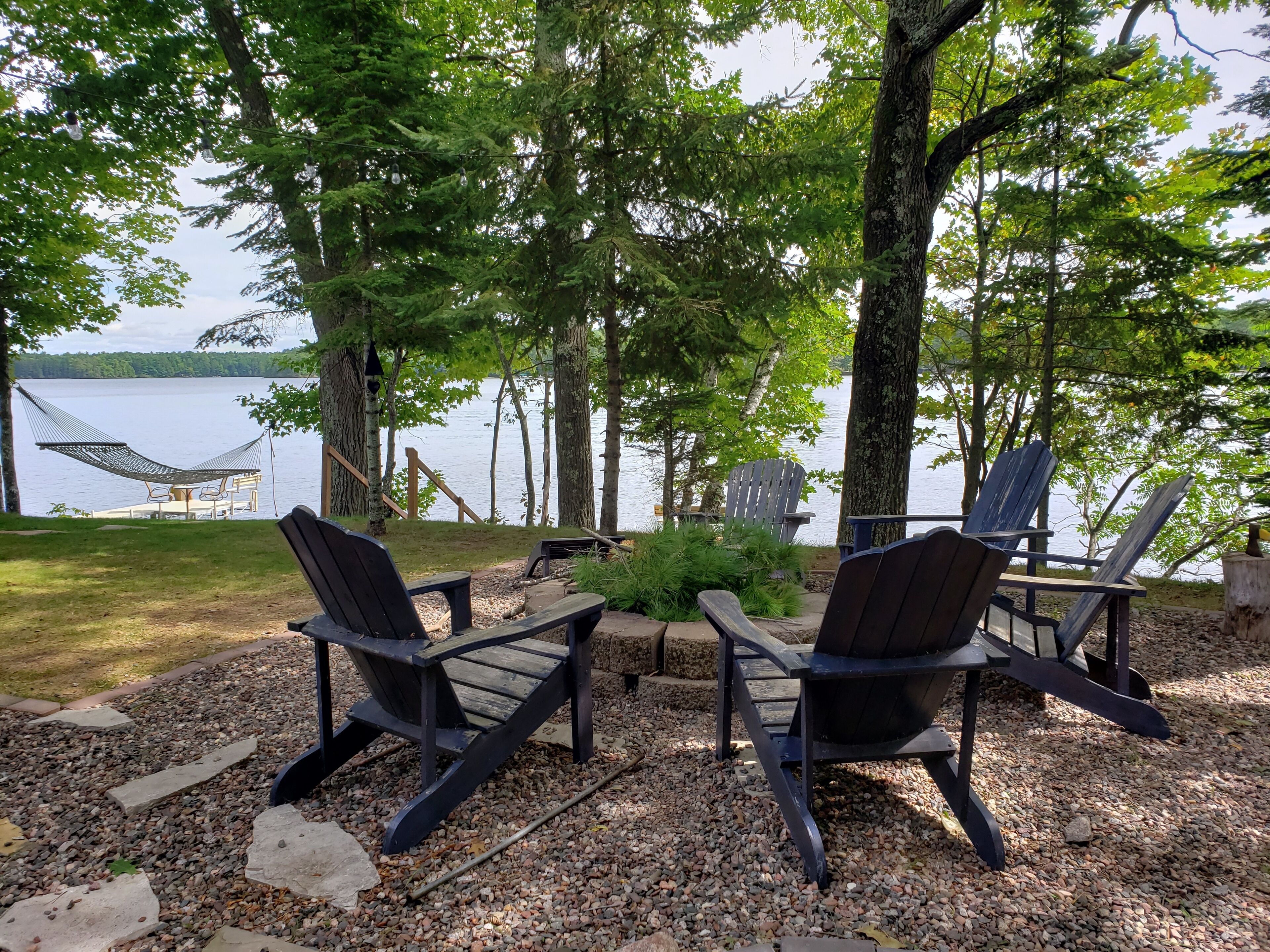 If boating is part of your plan, the dock can easily handle your fishing or pontoon boat. With 1,100 acres of water, the Shishebogama/Gunlock lake chain is great for fishing, cocktail-cruising, sailing and kayaking. (We like to kayak from our place to the Black Bear Bar.)