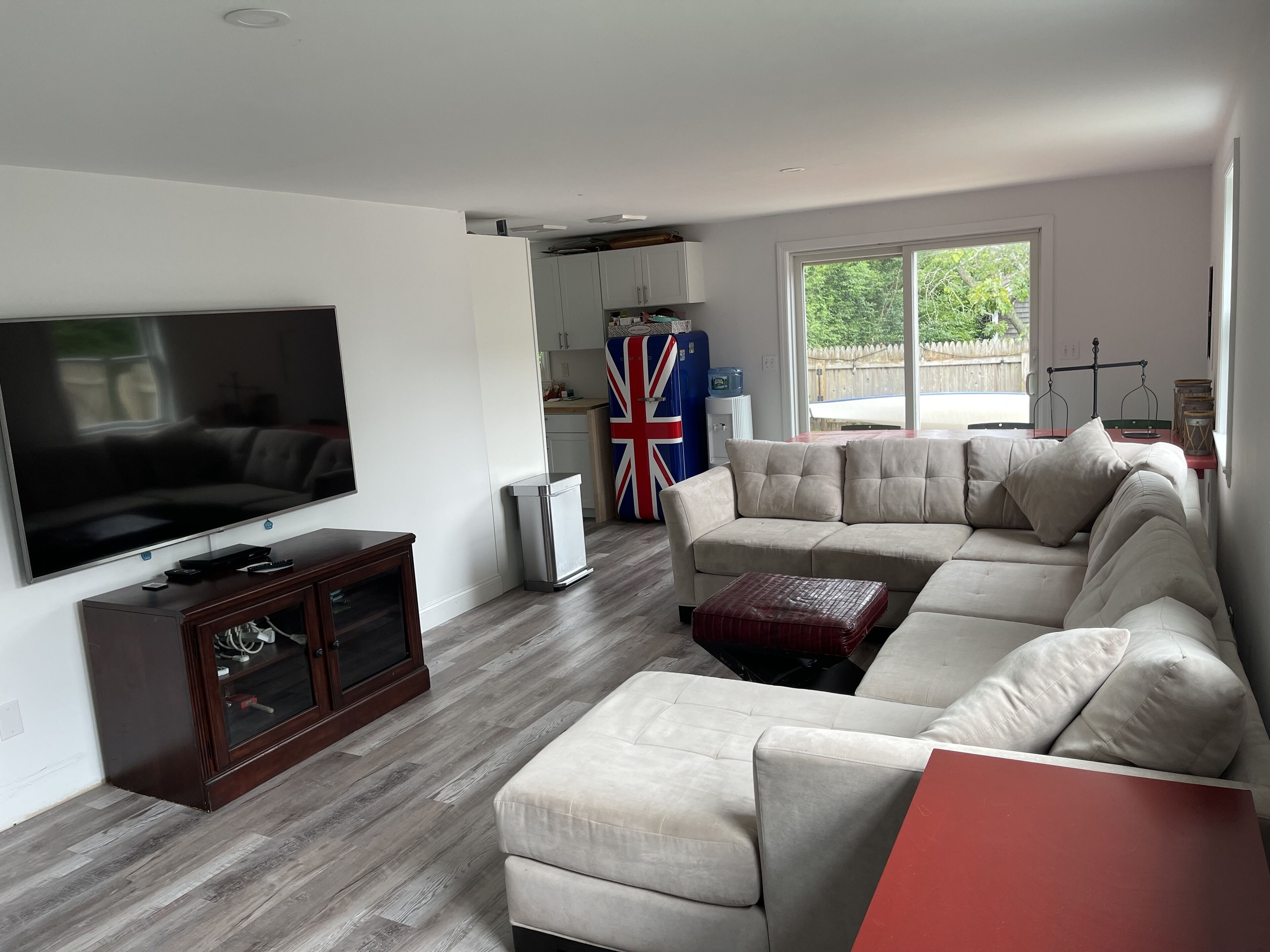 The décor is a mix of bought and repurposed objects we have collected on our adventures. The compound has different levels, lots of lawn space and stairs directly down to the water. Fort Pond is more like a lake, 171 acres of freshwater. Kayak, and paddle board right from the backyard.