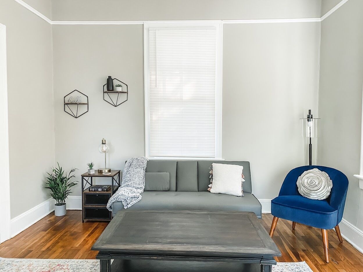 The only down fall to this cozy home is we do not have a fenced in yard for the fur pets! Don't let that stop you though, as there is a park across the street and we welcome all pets!