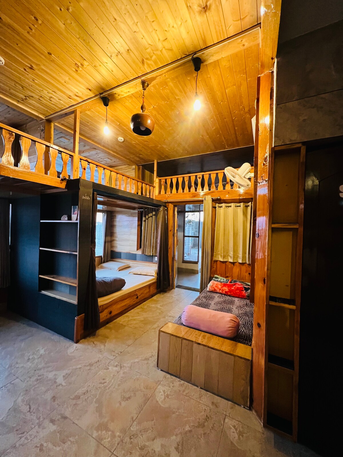 The cottage faces east with a wide open view of the upper Himalayan range on the north side. On a clear morning, the rising sun and the white peaks can be captured in one frame from the first floor balcony. Climbing up to the gazebo at the top only makes it more mesmerizing. You can lift some weights or do yoga. Or, you can just stay cozy in your bed looking through the glass window at the sun rising up the mountain horizon.