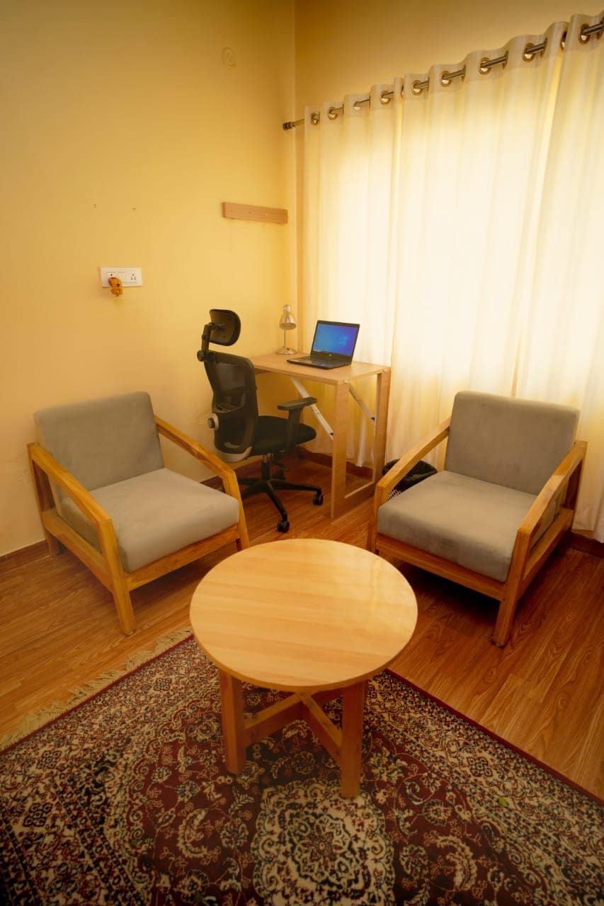 🌅 Sit-Out Area Facing Dehradun Valley: Breathe in the fresh mountain air from your sit-out area that opens to mesmerizing views of the Dehradun Valley. A perfect spot to sip your morning coffee or stargaze in the evening.