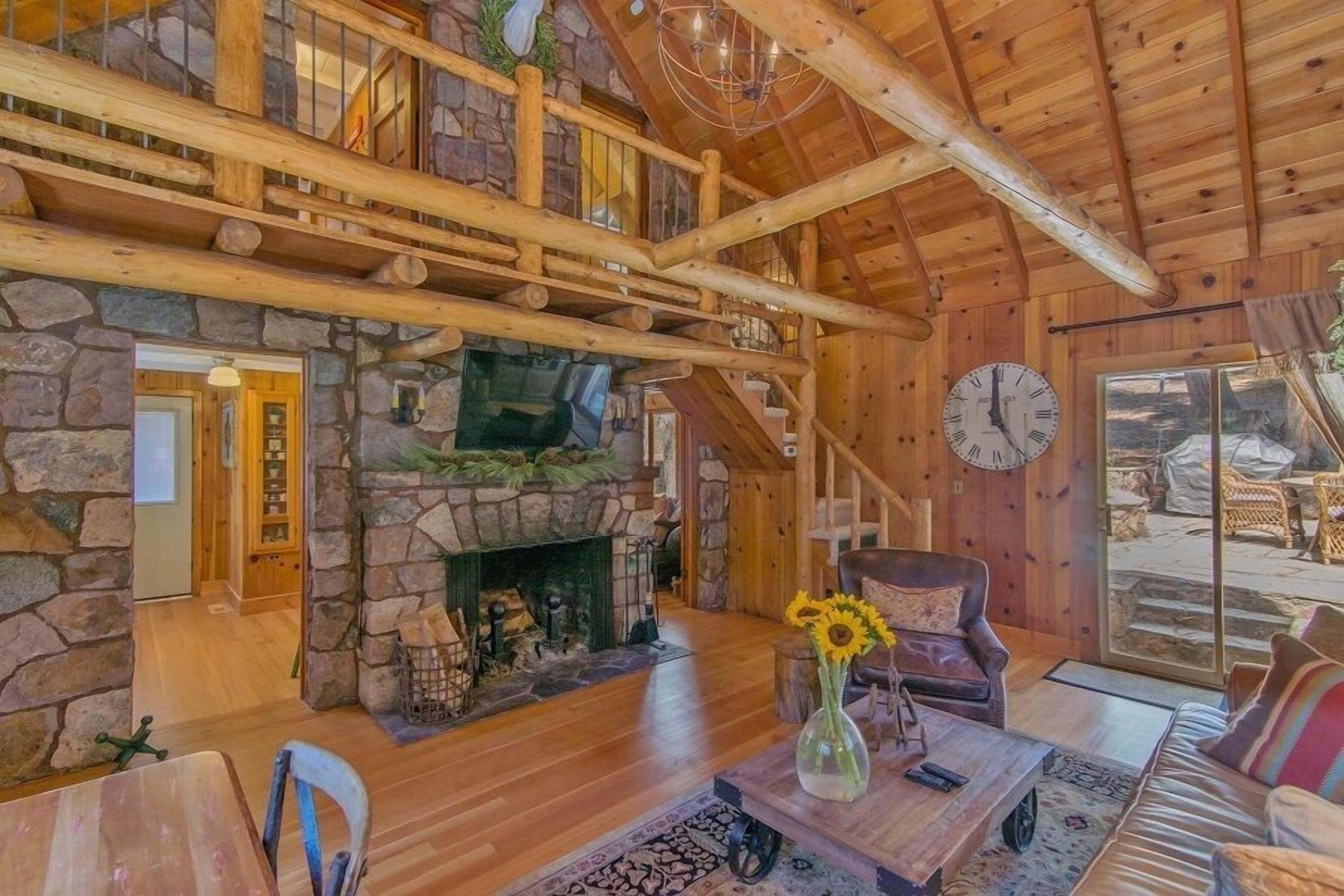 The Honeymoon Cottage is the perfect vacation rental cottage tucked in a quiet street on the West Shore of Lake Tahoe. This vacation home is exactly how you would imagine a Tahoe home with wood floors, pine-covered walls, a cozy wood stove, and a quiet wooded setting. The kitchen is well equipped for cooking meals to share with friends and family. The kitchen shares a space with the cozy living room that is set up around the fireplace creating the perfect environment for family time. The outside area has a large deck, with built-in bench seats and a hot tub that looks onto a vacant lot next door. The upstairs has two bedrooms one with a King Bed and the other with a Queen bed, both with quality linens. There is also a second living area that is carpeted and has big comfy couches, a gas fireplace, and a TV with a DVD player and satellite dish.