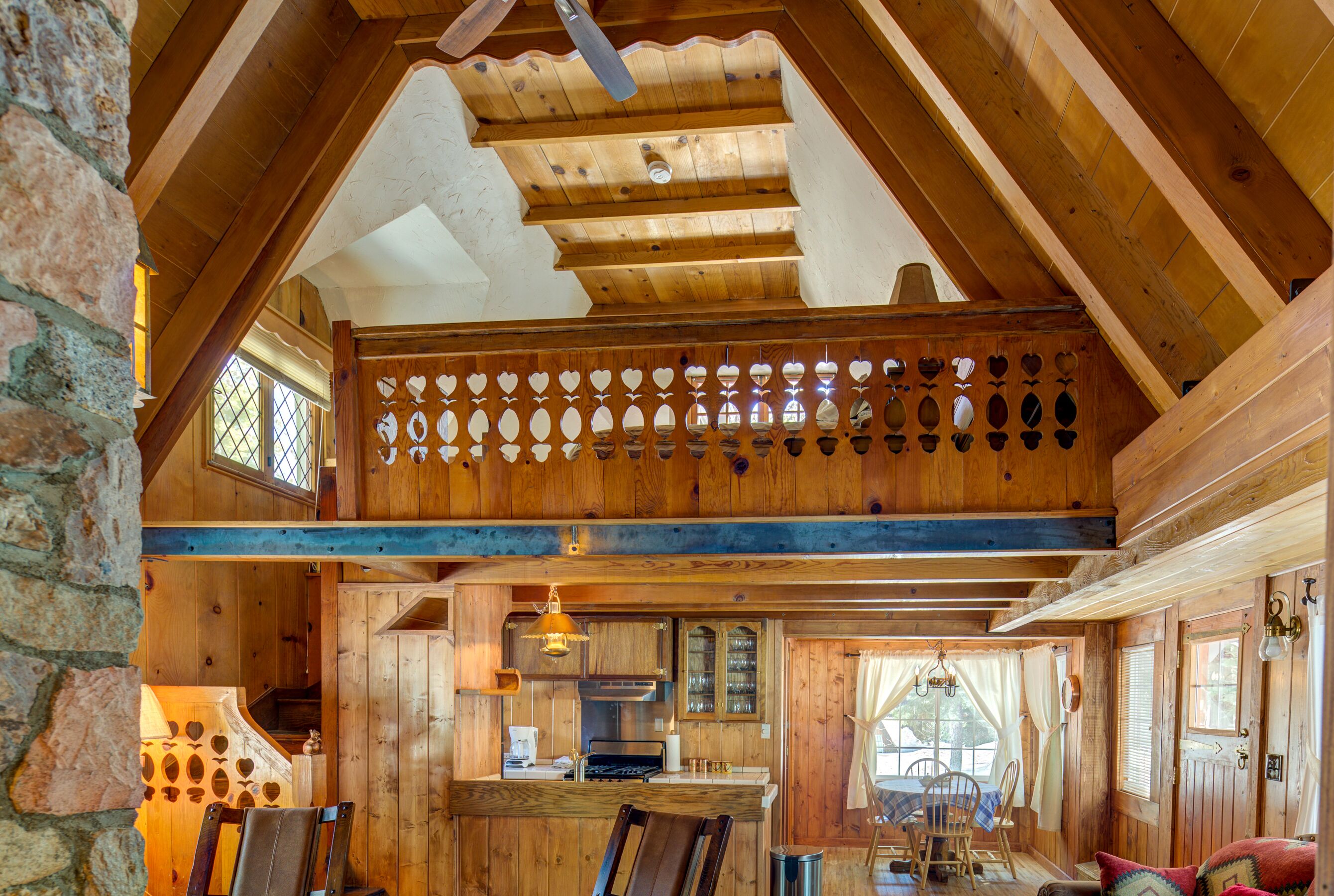 This darling cabin is perfectly situated in Sunnyside and is just few minutes walk to the private beach, with lake views from our front lawn. Features include a cozy living room with pass-through access to the kitchen. The living and dining room is adorned with a stone gas fireplace, knotty pine walls, carved beams, beautiful wood floors, and rustic pine railings. The darling kitchen is complete with a 1930's original Wedgewood stove.