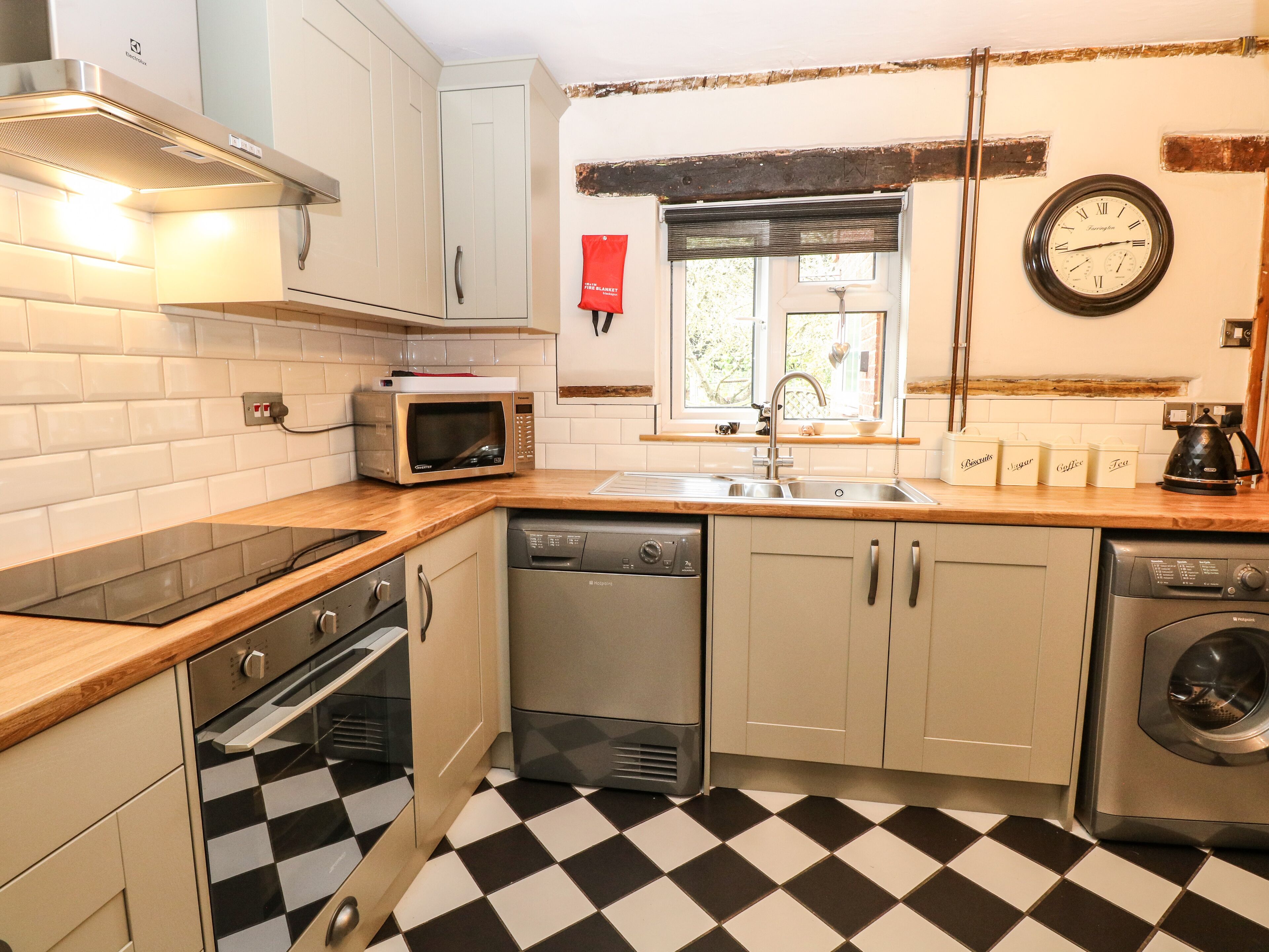 The kitchen provides a combi oven/microwave/grill and a 2-ring ceramic hob.