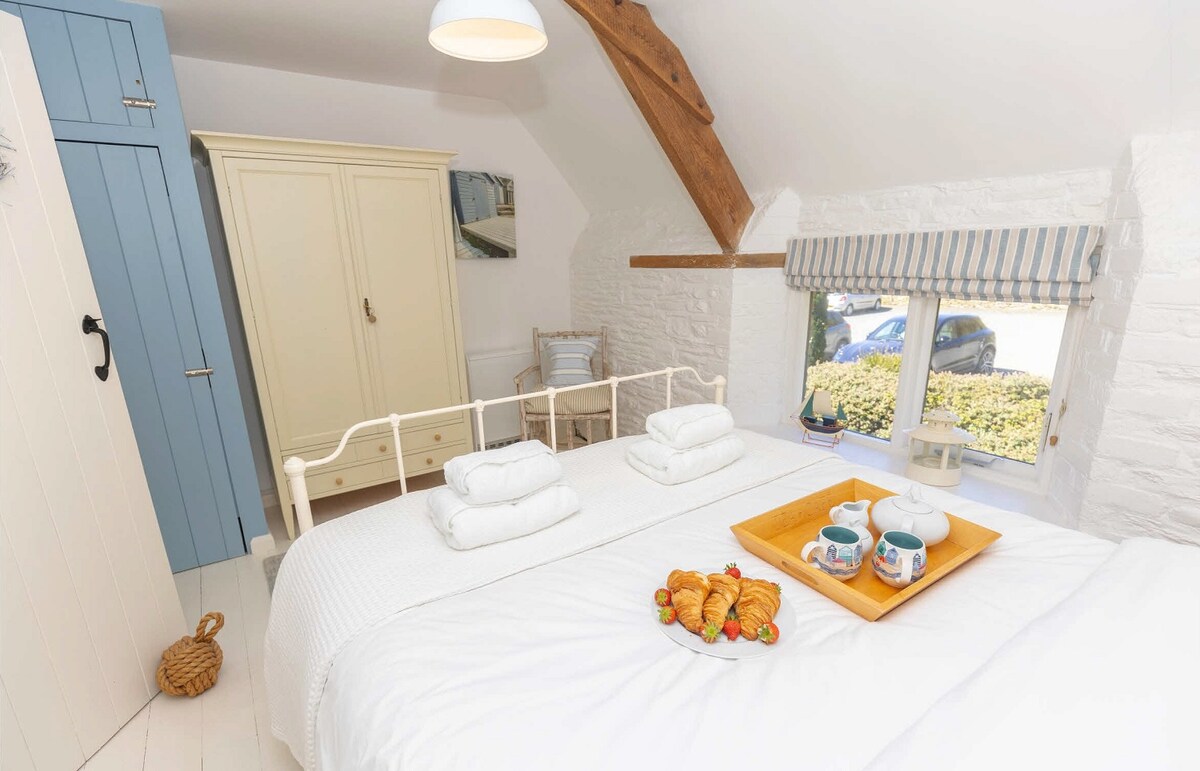 Bedroom 1 houses a queen-size bed and has lovely views overlooking the river which can be enjoyed from the window seat.