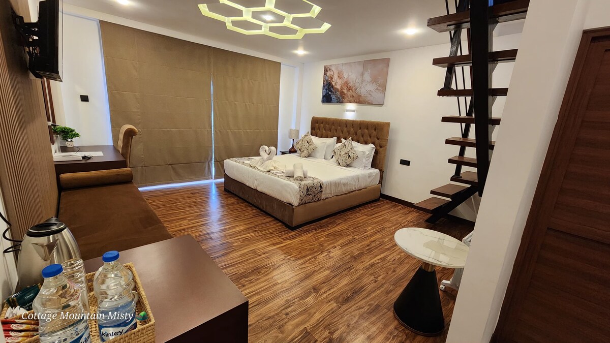The outdoor space is equally inviting, with a beautifully manicured garden where you can enjoy your morning tea while soaking in the crisp, cool mountain air. The gentle aroma of nearby tea plantations and the peaceful ambiance make this cottage a perfect retreat for relaxation and rejuvenation.
