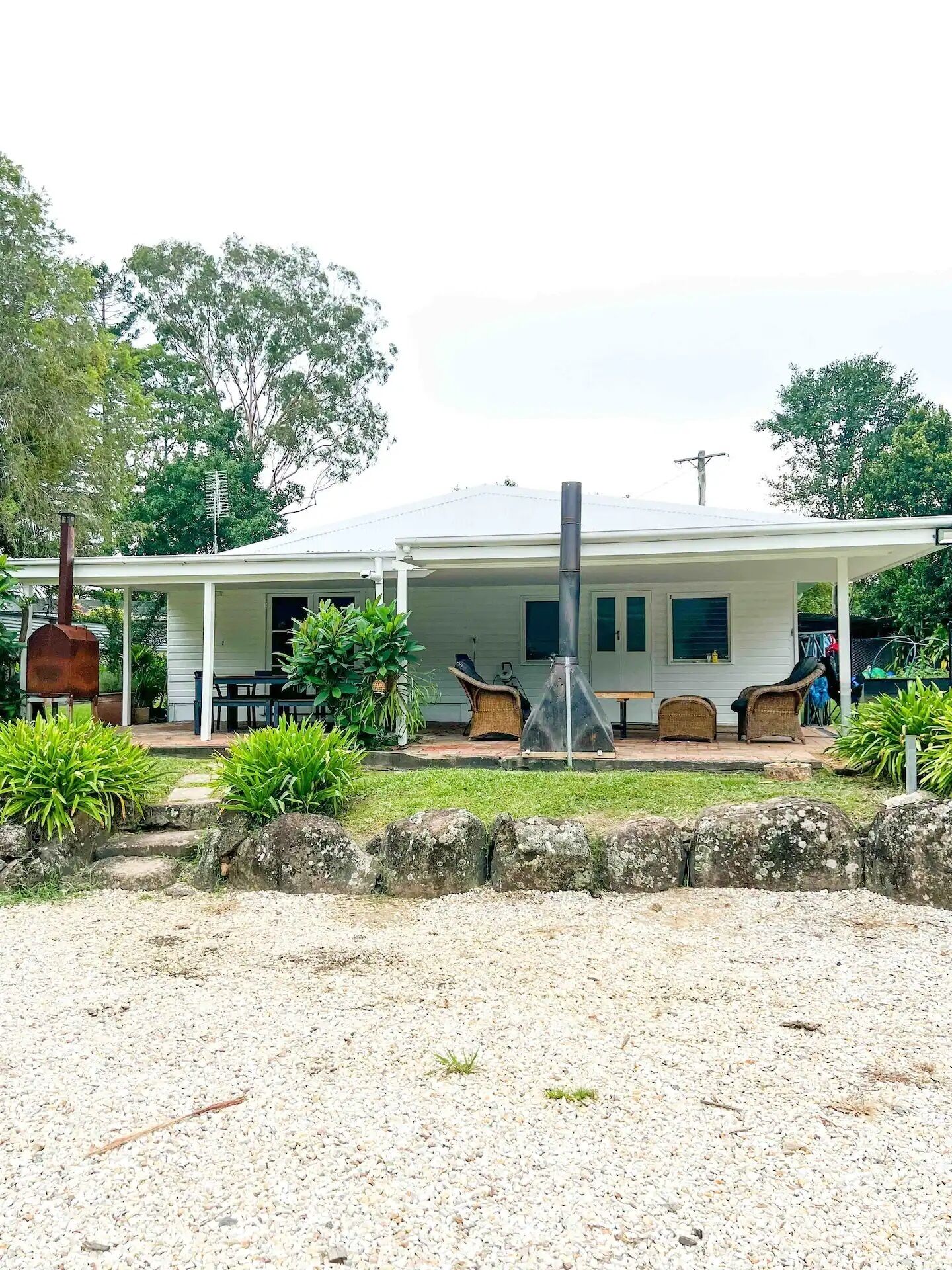 The front exterior of the house provides a considerable driveway & garden. The sizeable decked verandah with seating is a great place to enjoy the sunshine.