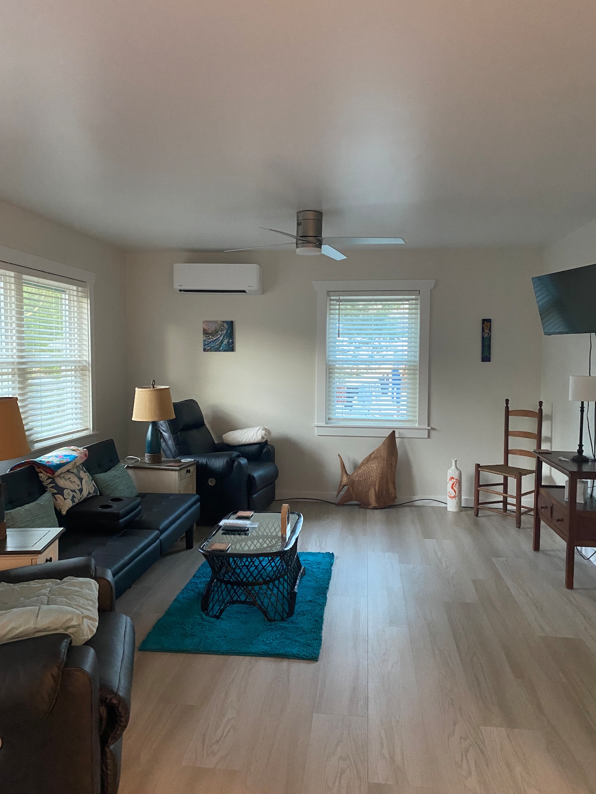 *Bedrooms: Double room to the left as you enter the hallway. The ceiling fan and mini-split heat pump will ensure that you or your guest sleep well at their own temperature. If you enjoy morning sunlight (we have blinds of course) this is your room !!