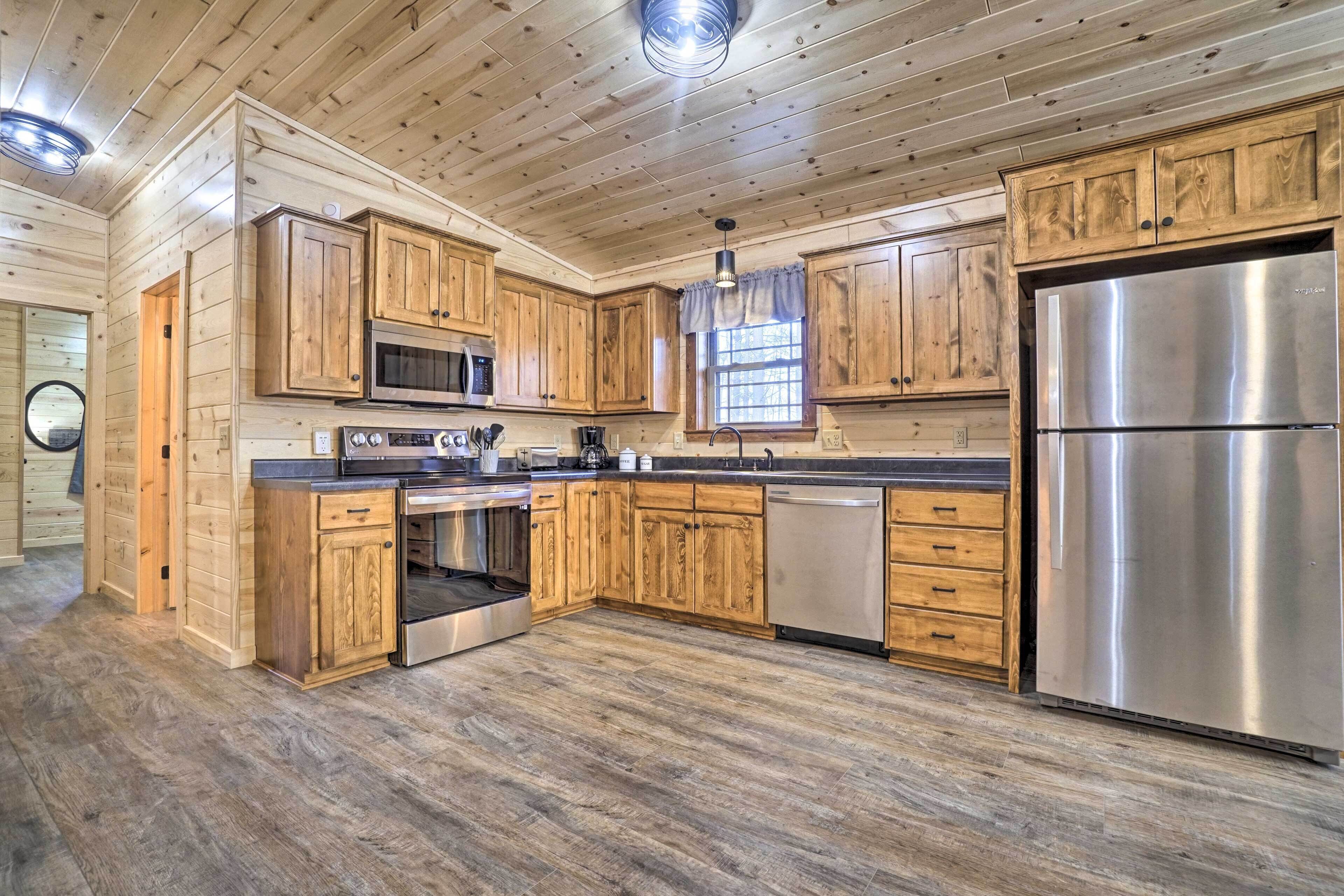 With everything you could need to cook or bake in the kitchen, you can enjoy a meal in the home. Or fire up the gas grill on the outdoor patio and bite into a local steak from Sugar Valley Meats.