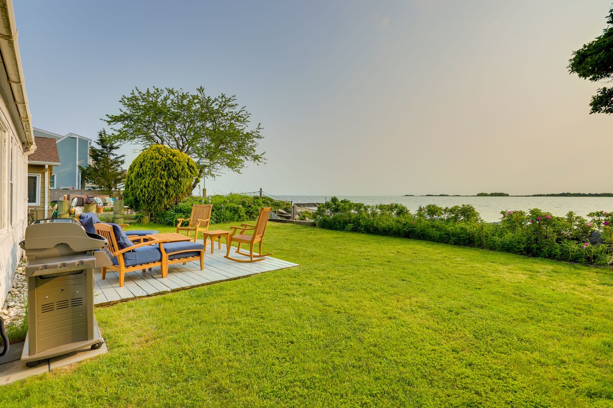 A quintessential New England cottage with views of the water from all rooms. Spectacular sunrises and sunsets, enchanting panorama views. A stone's throw from the beautiful Grass Island state park and boat launch, a waterfront natural preserve, perfect for hiking or communing with nature.
