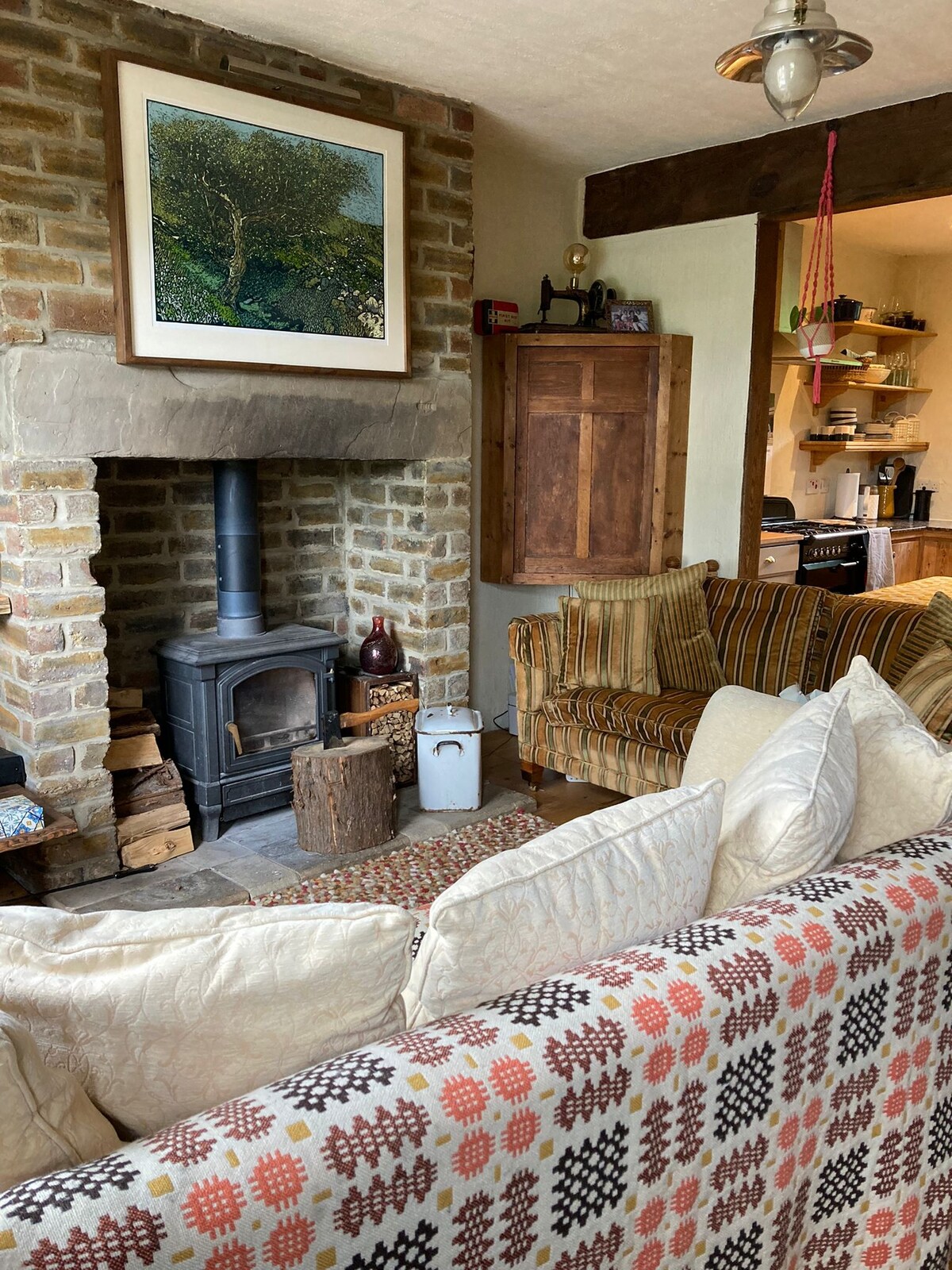 Kitchen/ Living - As you enter the cottage step straight into an open plan, elegantly styled kitchen, dining, and lounge space featuring a fabulous 3 sided Contura log burner for those wintery evenings. Large glazed bi-folding doors provide access to a south facing private patio and lawn with beautiful views of the countryside. A small but well equipped kitchen with central extendable table provides for comfortable dining, or go alfresco on the terrace with BBQ and luxury outside dining set with integrated gas fire.